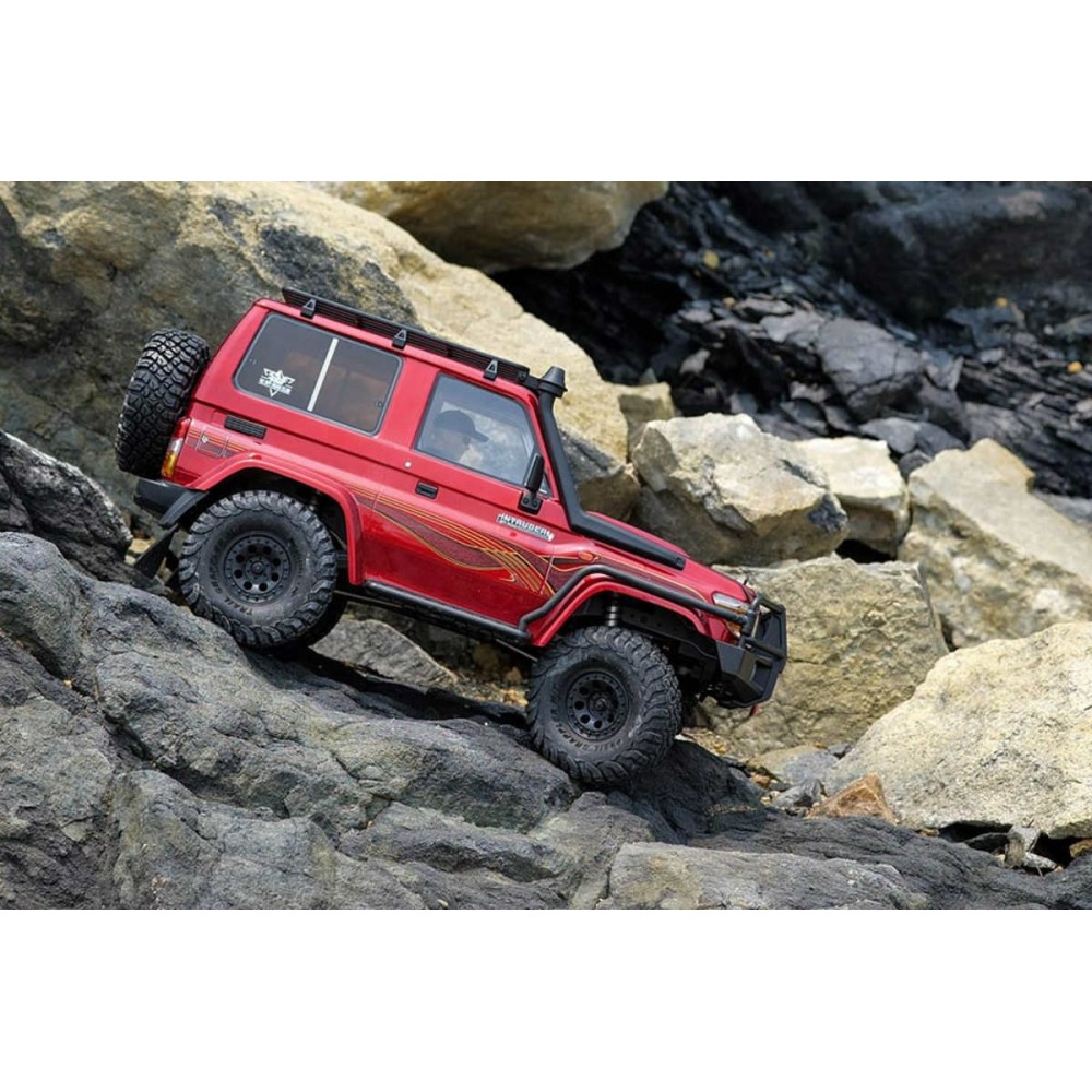 Kompletně sestavený RC crawler/expediční speciál se stejnosměrným motorem, 60A vodotěsnou 2v1 jednotkou regulátoru/přjímače, světelným modulem a 25kg servem řízení s kovovými převody. Set včetně 6kanálového 2,4Ghz vysílače. Bez pohonného akumulátoru a nabíječe. Červená karoserie.