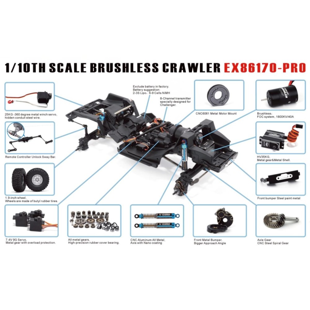 Challenger PRO je poháněn střídavým systémem FOC od společnosti Hobbywing (WP Fusion BLSYS pro Crawler-540 SPEC-RTR), který se vyznačuje silným točivým momentem při nízkých otáčkách a vynikající linearitou. Motor běží hladce a tiše s vynikající vodotěsnou a prachotěsnou ochranou, a snadno se poradí se všemi klimatickými podmínkami a různými druhy terénu. Výstup BEC 7,4 V / 3 A přináší větší točivý moment pro vysokonapěťové servo.