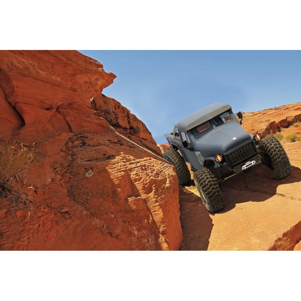 Kompletně sestavený RC crawler/expediční speciál se střídavým FOC systémem a silným servem řízení pro pokročilé jezdce. Model je vybaven portálovými nápravami, 2rychl. převodovkou s DIG systémem, uzamykatelným zadním stabilizátorem, servo-navijákem apod. Set včetně 8kanálové 2,4Ghz RC soupravy. Bez pohonného akumulátoru a nabíječe. Šedá karoserie.