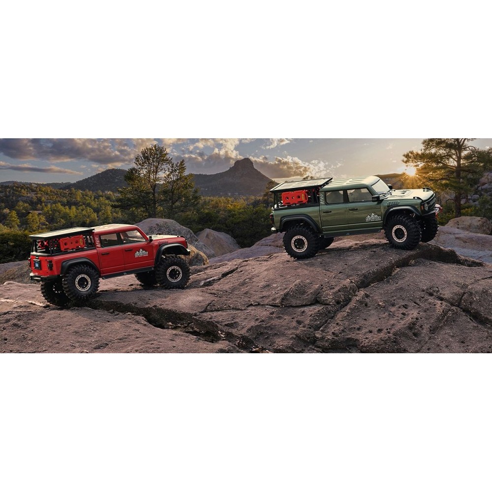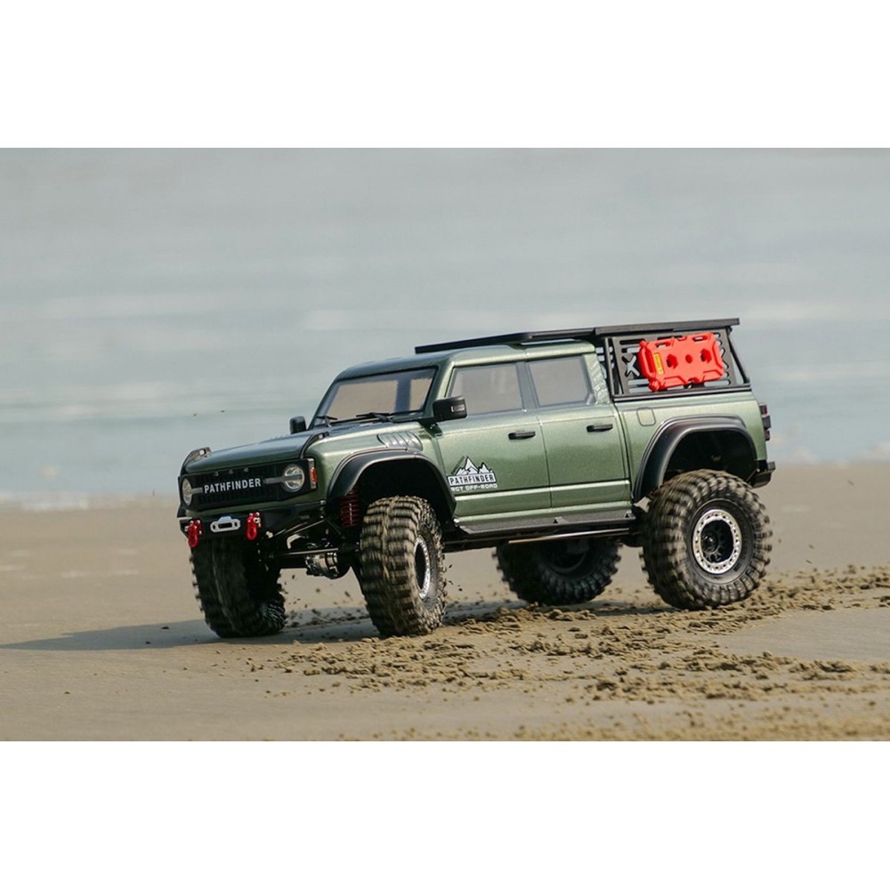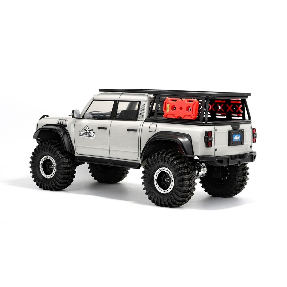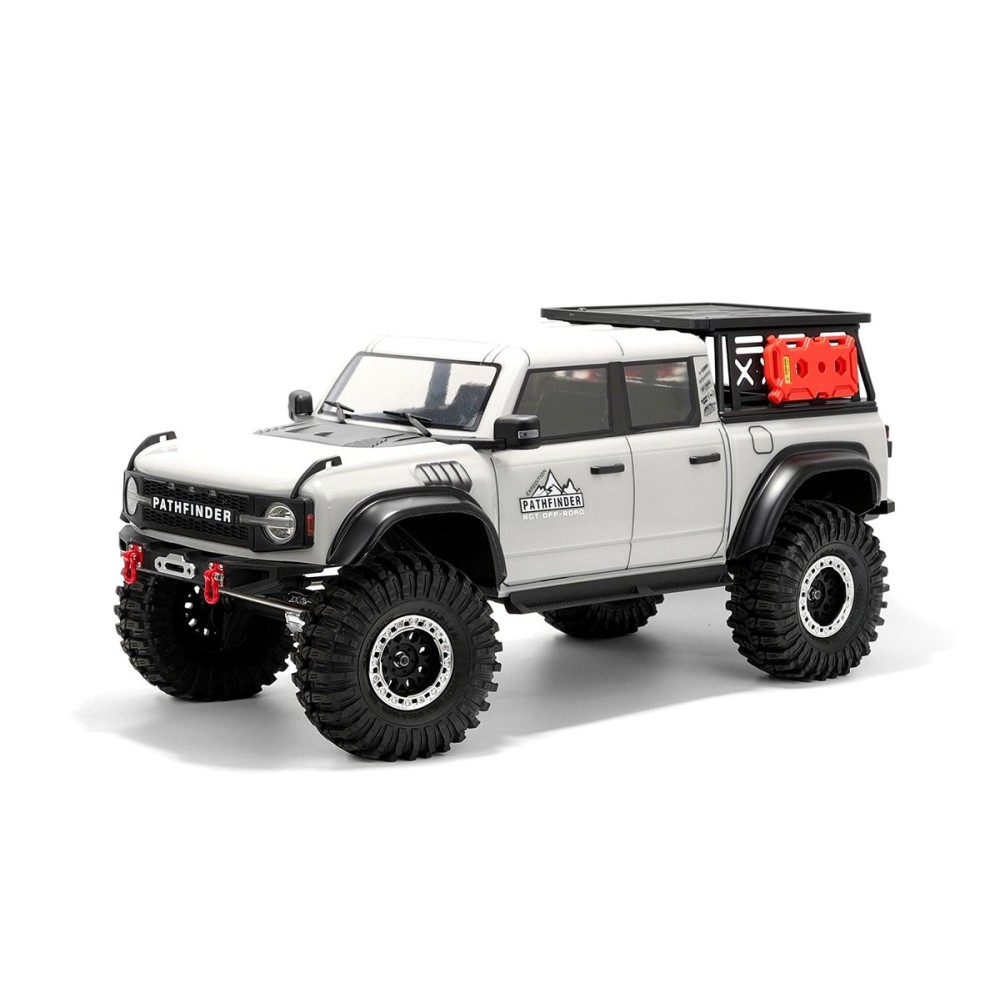 Kompletně sestavený RC crawler/expediční speciál se stejnosměrným motorem, voděodolným regulátorem a silným servem řízení pro pokročilé jezdce. Model je vybaven portálovými nápravami, 2rychl. převodovkou, uzam. předním a zadním diferenciálem, LED modulem apod. Set včetně 6kanálové 2,4Ghz RC soupravy. Bez pohonného akumulátoru a nabíječe. Bílá karoserie.