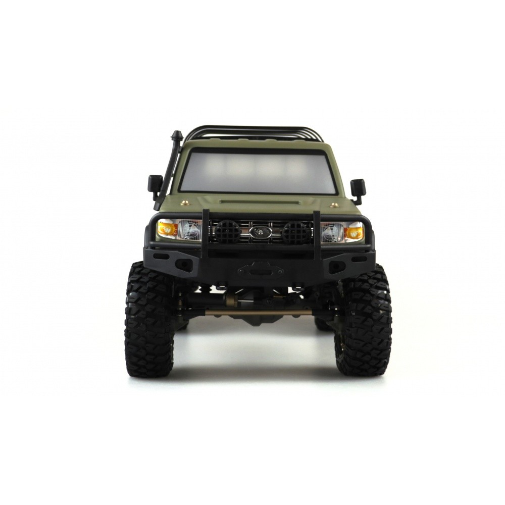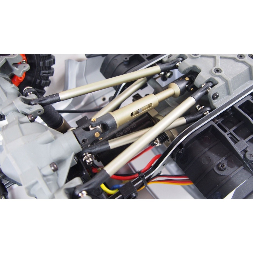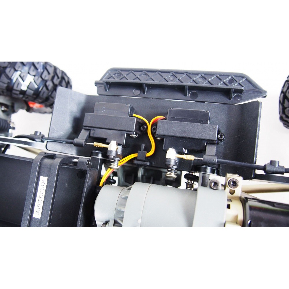 Vybaven pevným 5mm silným kovovým rámem, portálovými nápravami, hliníkovými vzpěrami, vysoce kvalitními, plně chráněnými olejovými tlumiči s prachovkami, motorem 550 crawler, důmyslným tlumičem řízení, 2-stupňovou manuální převodovkou a odklápěcí karoserií zajištěnou pomocí neodimových magnetů! Diferenciály jsou samostatně uzamikatelné (přední a zadní) tlačítkem na ovladači! Tento model je výsledkem náročného vývoje a mnoho jeho funkcí je na trhu v této podobě poprvé!