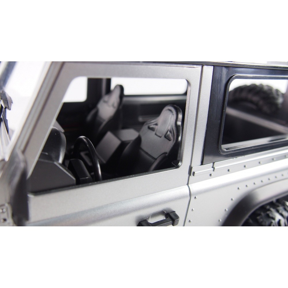 D90 Rock Crawler v podobě legendárního Land Roveru Defender, 1:12, 4WD, LED světla a blinkry, 2,4 GHz, ochrana proti sříkající vodě, plně proporcionální, 100% RTR, stříbrná.