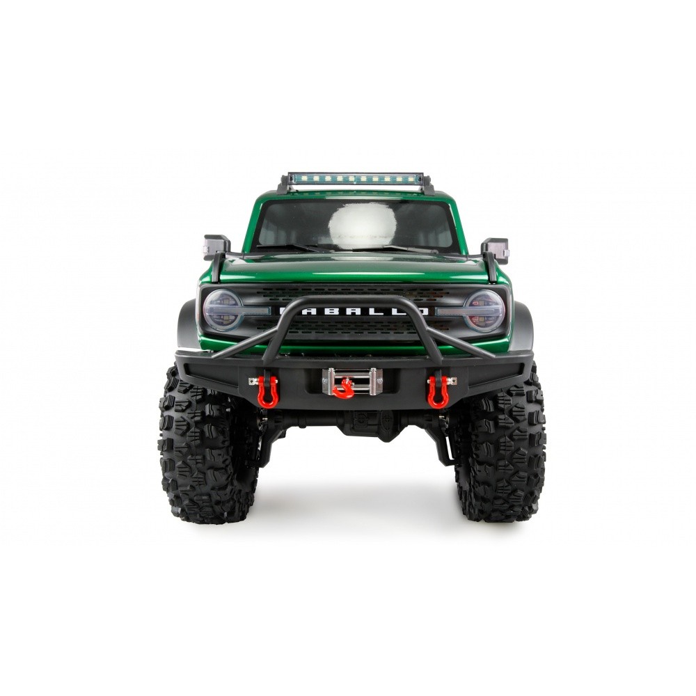 AMXrock Caballo Crawler 4WD v měřítku 1:10, ARTR, lanový naviják, vypínatelné LED světelný modul, uzávěrky diferenciálu, kovové převody, pevný rým z hliníku, barva zelená metalíza.