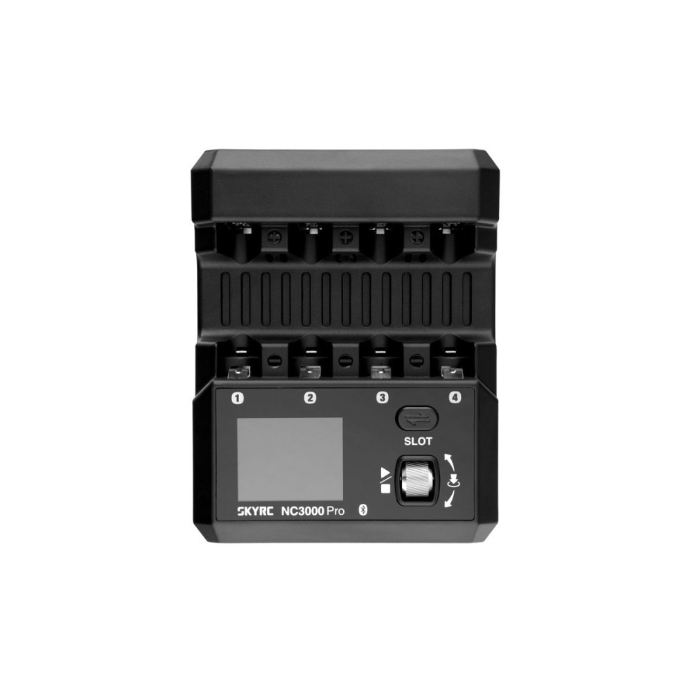 Inteligentní nabíječ pro 1–4 NiMH akumulátory AA/AAA. Nabíjení 0,2–3A, vybíjení 0,2–2,5A, cyklování, formování, oživování, rychlonabíjení, vybíjení. pro napájení z USB-C zdroje s protokolem QC2.0, PD/QC3.0 min 30 W. Možnost ovládání smartphonem a aktualizace firmwaru přes Bluetooth 5.0 v aplikaci SkyCharger.