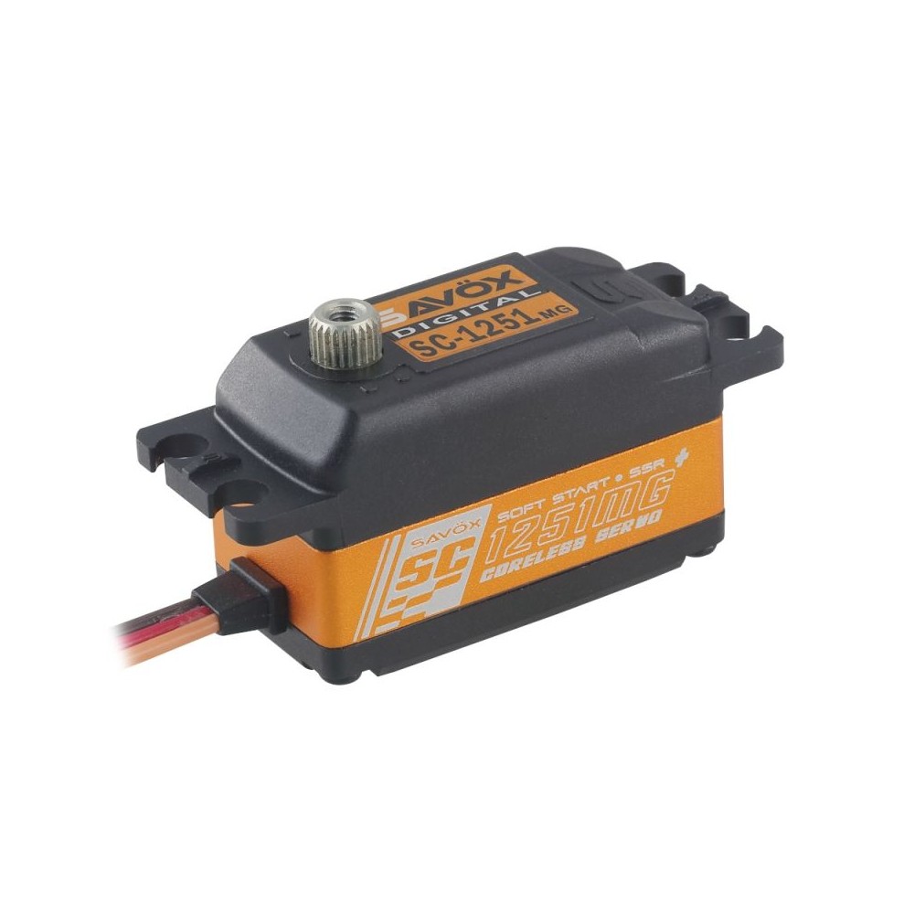 Digitální Low profile servo s Coreless (bezjádrovým) motorem a kovovými převody, 2x kuličkové ložisko, 7,0/9.0kg při 4,8/6,0V a 0,10/0,09s na 4,8/6,0V, váha 44,5g, 40,8x20,2x25,4mm. Provozní napětí 4,8 - 6,0V.