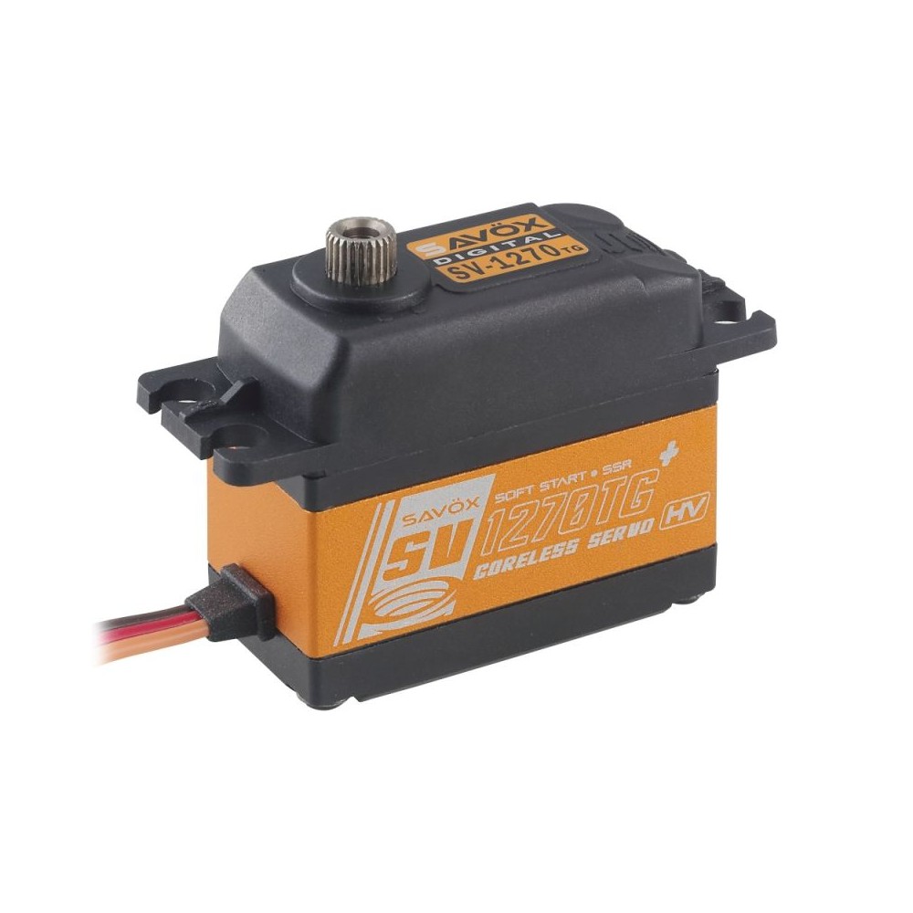 Jedná se o Digitální HiVolt servo Savox SV-1270TG+ "Monster Torque" s kovovými převody a titanovým povrchem. Toto servo je zkonstruováno tak, aby zvládlo i ty nejextrémnější požadavky a podmínky.