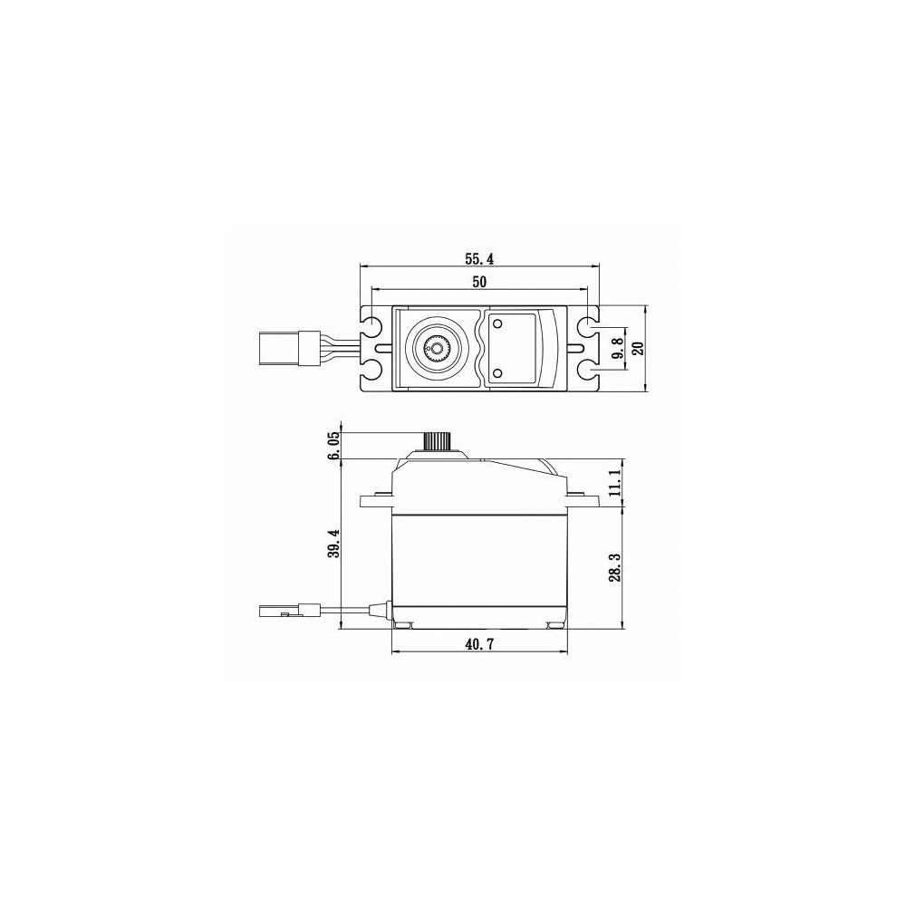 Digitální standard servo s stejnosměrným motorem a plastovými převody, 2x kuličkové ložisko, 4,2/6.5kg při 4,8/6,0V a 0,16/0,13s na 4,8/6,0V, váha 42,0g, 40,7x20,0x39,4mm. Provozní napětí 4,8 - 6,0V.