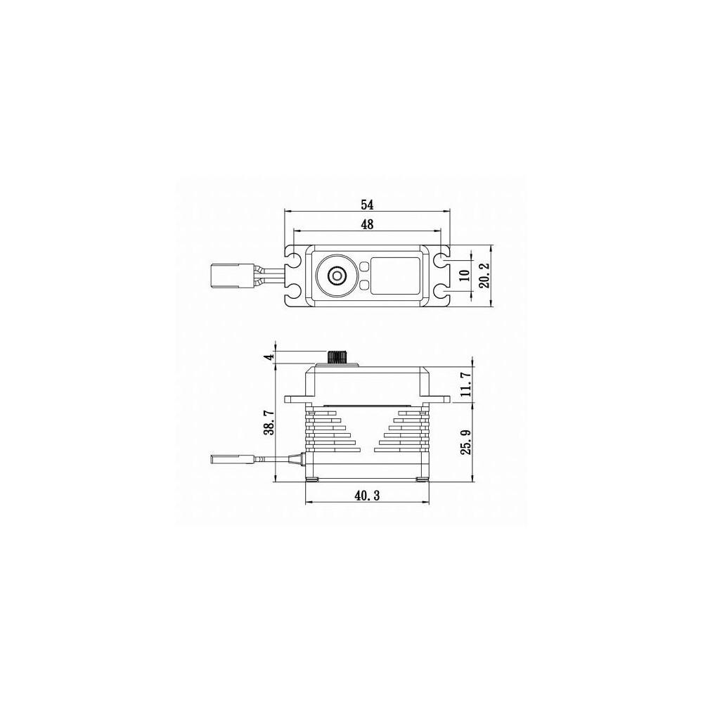 Digitální HiVolt standard servo s Brushless (střídavým) motorem a kovovými převody, 3x kuličkové ložisko, 17,0/23,0/30.0kg při 6,0/7,4/8,4V a 0,06/0,05/0,042s na 6,0/7,4/8,4V, váha 79,0g, 40,3x20,2x38,7mm. Provozní napětí 4,8 - 8,4V.