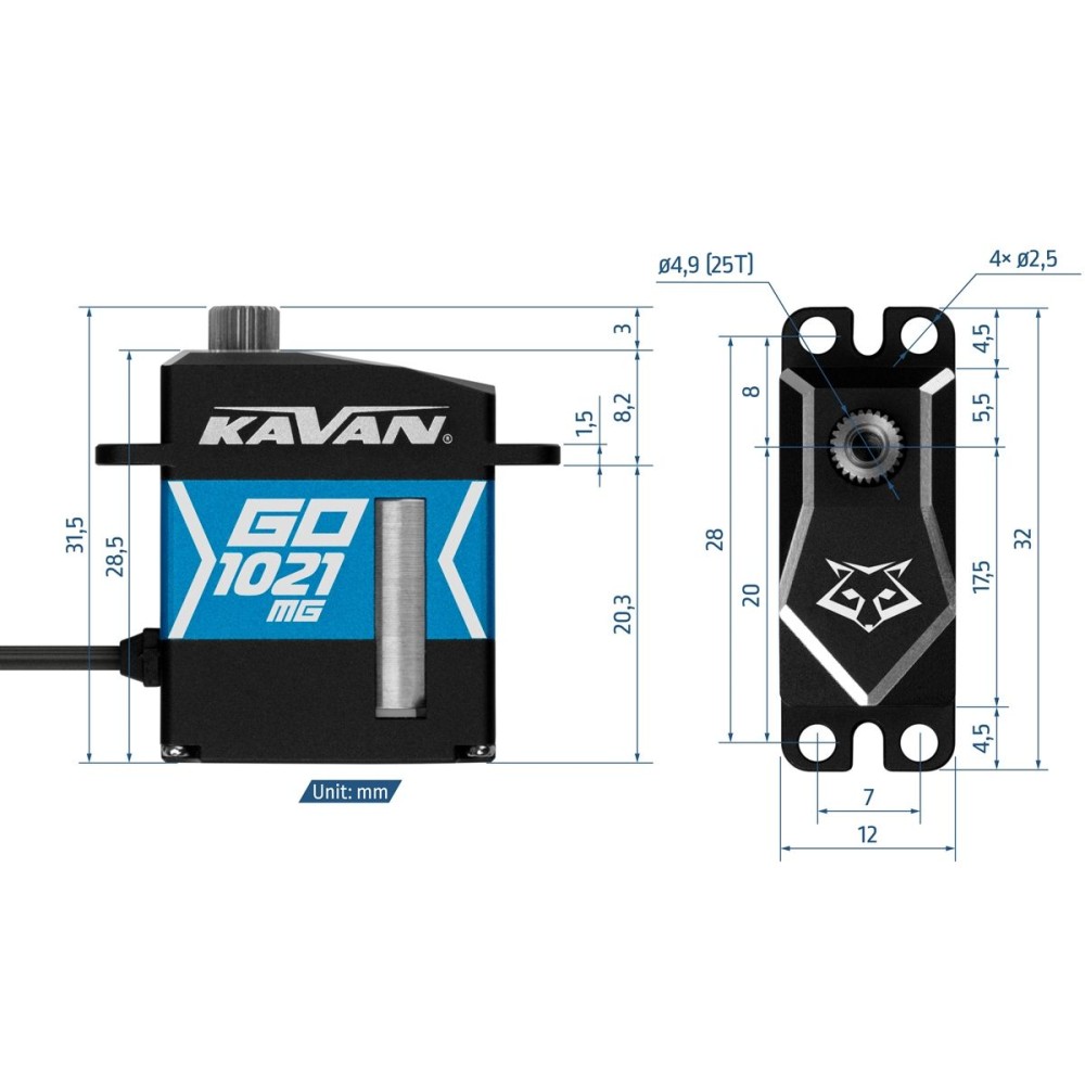 Super silné a super rychlé programovatelné digitální mikroservo s ocelovými převody s výstupní hřídelí uloženou na dvou kuličkových ložiscích pro použití v RC modelech všech typů. Díky ploché krabičce s výškou 12 mm je zvláště vhodné pro ovládání křidélek a klapek v modelech rychlých RC větroňů/hotlinerů s tenčími profily křídla. Pro dokonalé chlazení i při vysokém zatížení je servo uloženo v hliníkové krabičce.