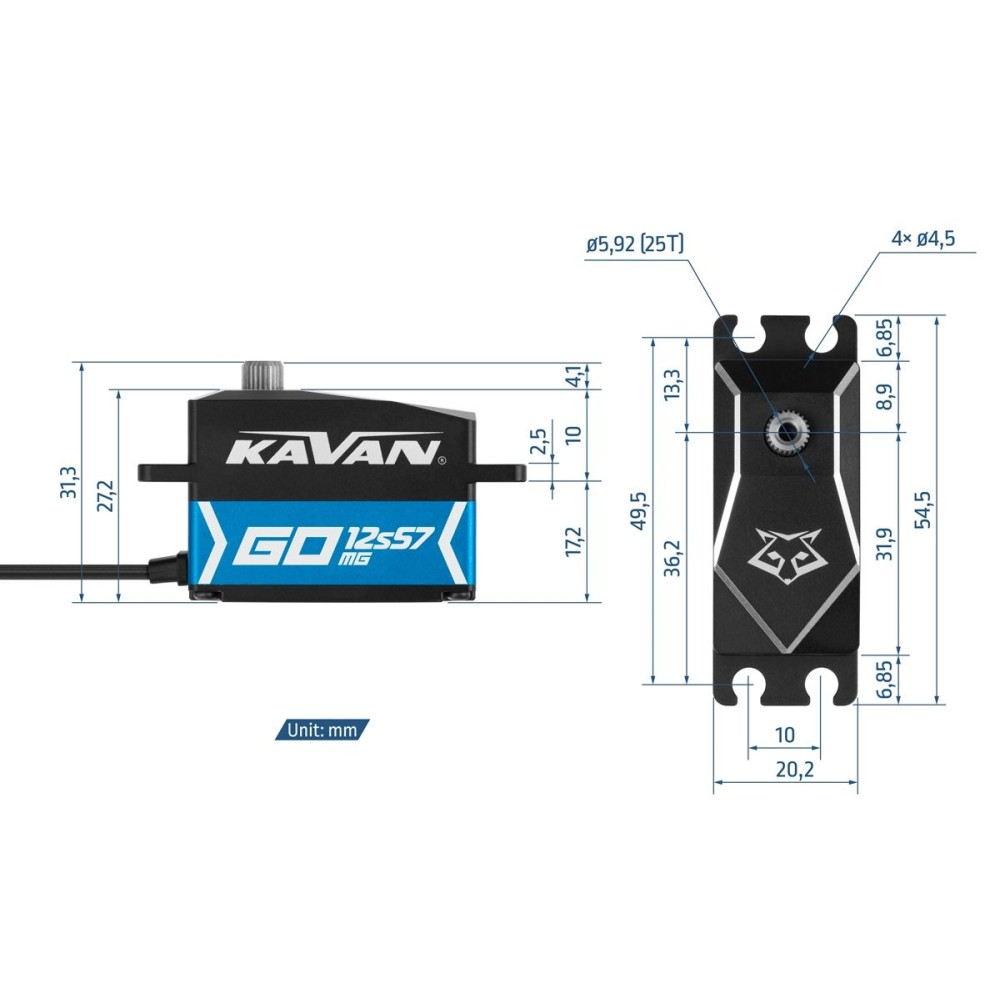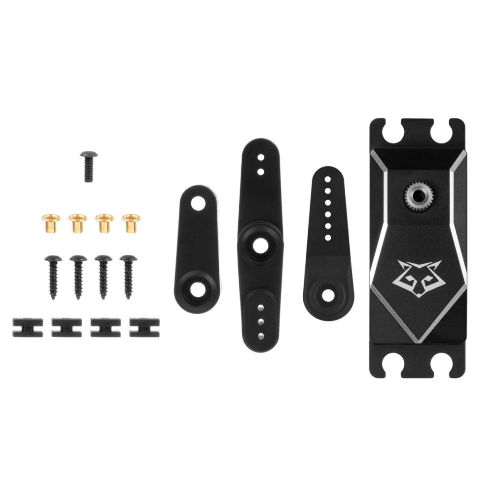 Velmi silné a velmi rychlé nízkoprofilové programovatelné digitální standardní servo 57 g se střídavým motorem, ocelovými převody a širokým rozsahem napájecího napětí 4,8–8,4 V, 2×BB, ideální pro cestovní RC auta 1:10/1:12, modely letadel i vrtulníků. Tah 14,0 kg.cm, rychlost 0,105 s/60°při 4,8 V, tah 17,0 kg.cm, rychlost 0,090 s/60° při 6,0 V, tah 19,5 kg.cm, rychlost 0,080 s/60° při 7,4 V, tah 20,0 kg.cm, rychlost 0,070 s/60° při 8,4 V. Hliníková krabička pro dokonalé chlazení při vysokém zatížení. Rozměry 40,8×20,2×26,5 mm, hmotnost 57,2 g.