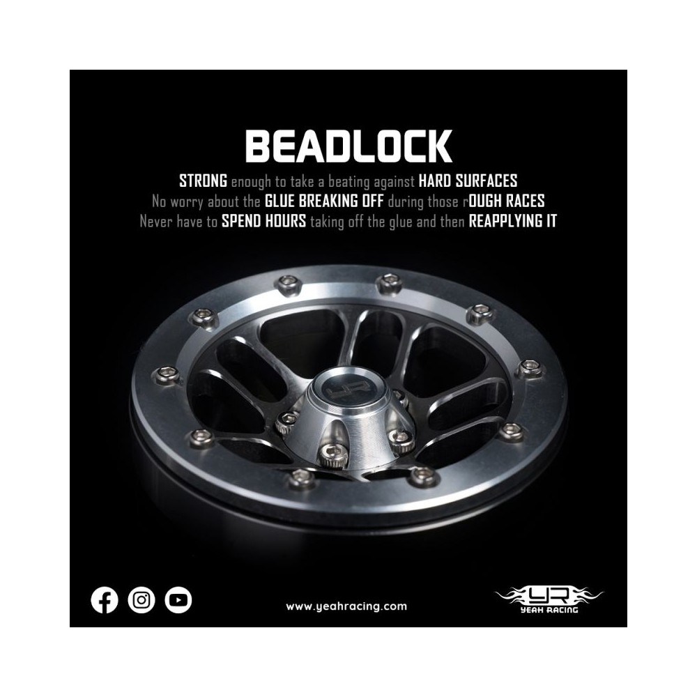 1,9palcová kola Yeah Racing Heavy Duty Beadlock Wheel pro vaše crawlery! Díky použití CNC obrábění, dokonalé kombinaci designu, materiálu a hmotnosti dostanete nejlépe vypadající a nejpevnější kola pro váš expediční vůz.