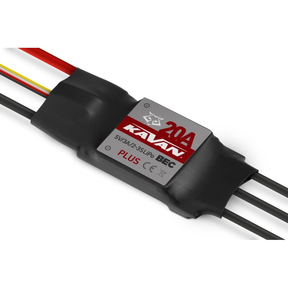 Nová generace programovatelných mikroprocesorových regulátorů KAVAN pro střídavé motory bez senzorů („brushless, sensorless“) zkonstruovaná s využitím možností nejmodernější polovodičové techniky s vynikajícími užitnými vlastnosti při zachování velmi jednoduché a pro uživatele přátelské obsluhy. Slouží k ovládání otáček střídavých elektromotorů v rekreačních a sportovních modelech letadel při napájení z akumulátorů LiPo/Li-ion/LiFe i NiCd/NiMH. Regulátor je vybaven lineárním stabilizátorem napájení BEC zajišťujícím napájení přijímače a serv z pohonného akumulátoru. Pro snadné nastavování regulátoru slouží LED programovací karta KAVAN PRO (slouží i pro programování regulátorů řady KAVAN PRO), která se prodává zvlášť.