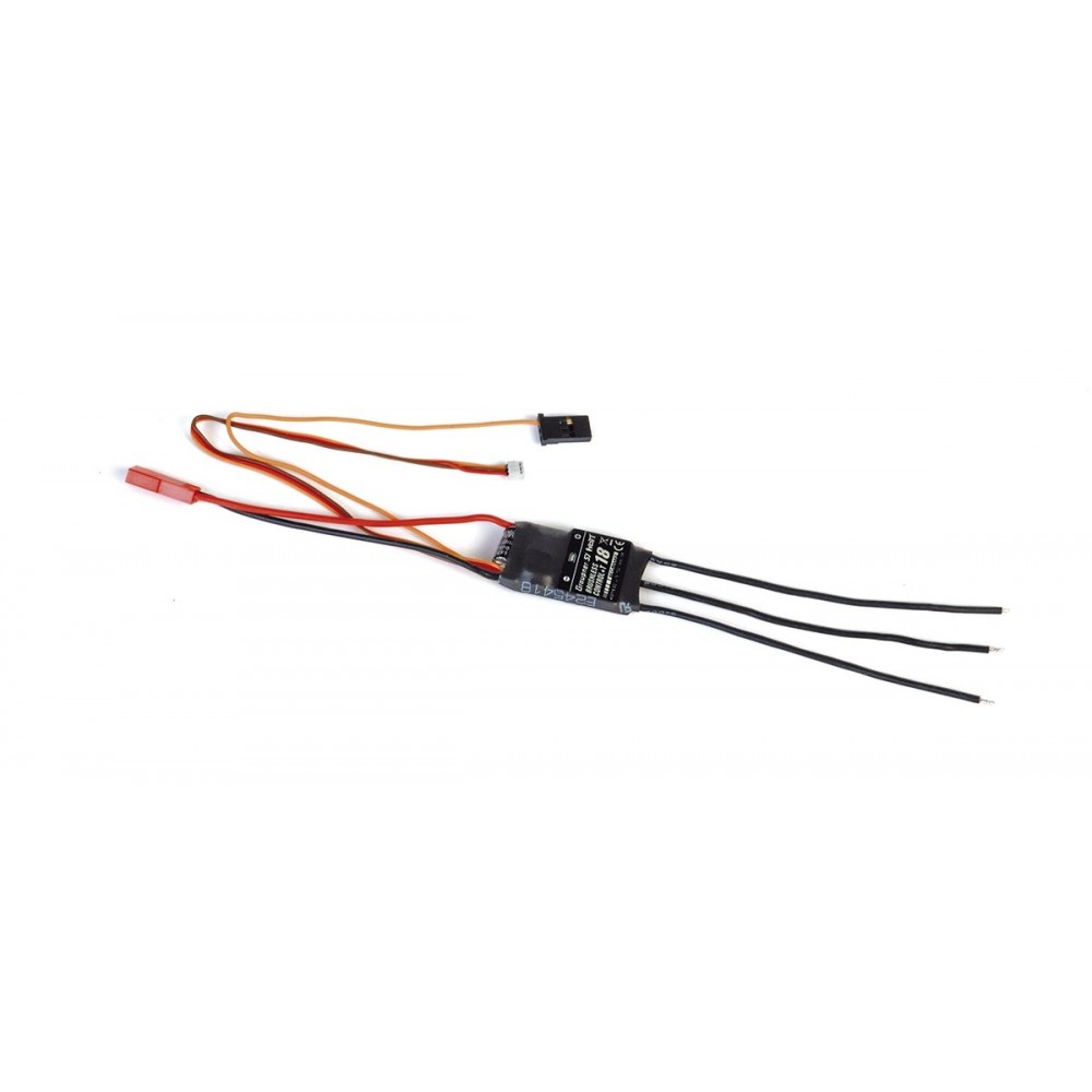 Nová řada univerzálních střídavých regulátorů otáček s telemetrickým výstupem systému HoTT. Regulátory mají přepínatelné programy se širokou škálou nastavitelných funkcí pro modely letadel, vrtulníků (s governorem), aut (jednosměrné s brzdou, obousměrné) a lodí (jednosněrné/obousměrné). Programování se provádí prostřednictvím telemetrického spojení systému HoTT přímo na displeji vysílače (vysílače HoTT s hlasovým výstupem telemetrie) nebo na SMART-BOXu v případě starších vysílačů s moduly HoTT. Z regulátoru jsou naopak na displej vysílače resp. SMART BOXu přenášeny údaje o napájecím napětí, teplotě regulátoru, otáčkách motoru. Můžete také nastavit prahové úrovně pro výstražná hlášení - např. min. napájecí napětí, max. teplota regulátoru, atd.. Regulátory mají výkonný spínaný BEC stabilizátor napájení 3 A s výstupním napětím nastavitelným v rozmezí 5.0 až 8.0 V po krocích 0.2 V.