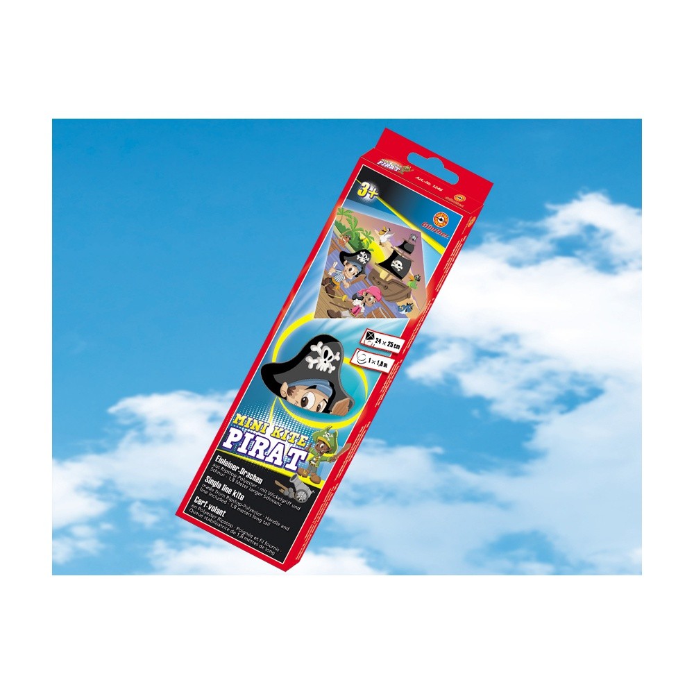 Pevná PE folie. Na slunci neblednoucí barvy.Velmi snadné ovládání! Létající drak mini Kite Pirat patří mezi dětmi oblíbené létající hračky, draky pro děti a hry na ven pod širým nebem!