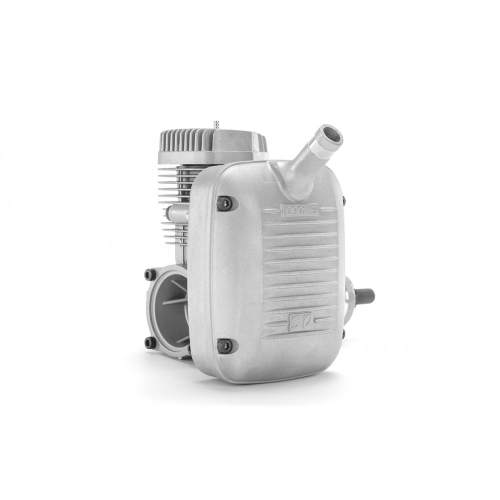 Dvoudobý letecký žhavící motor 30 ccm s dvoujehlovým RC karburátorem. Výkon 4,1 kW při 7600...