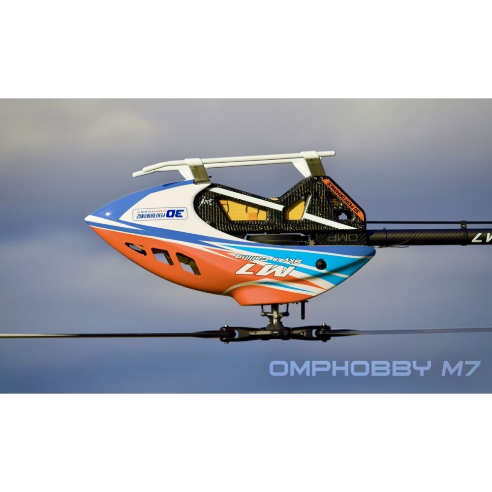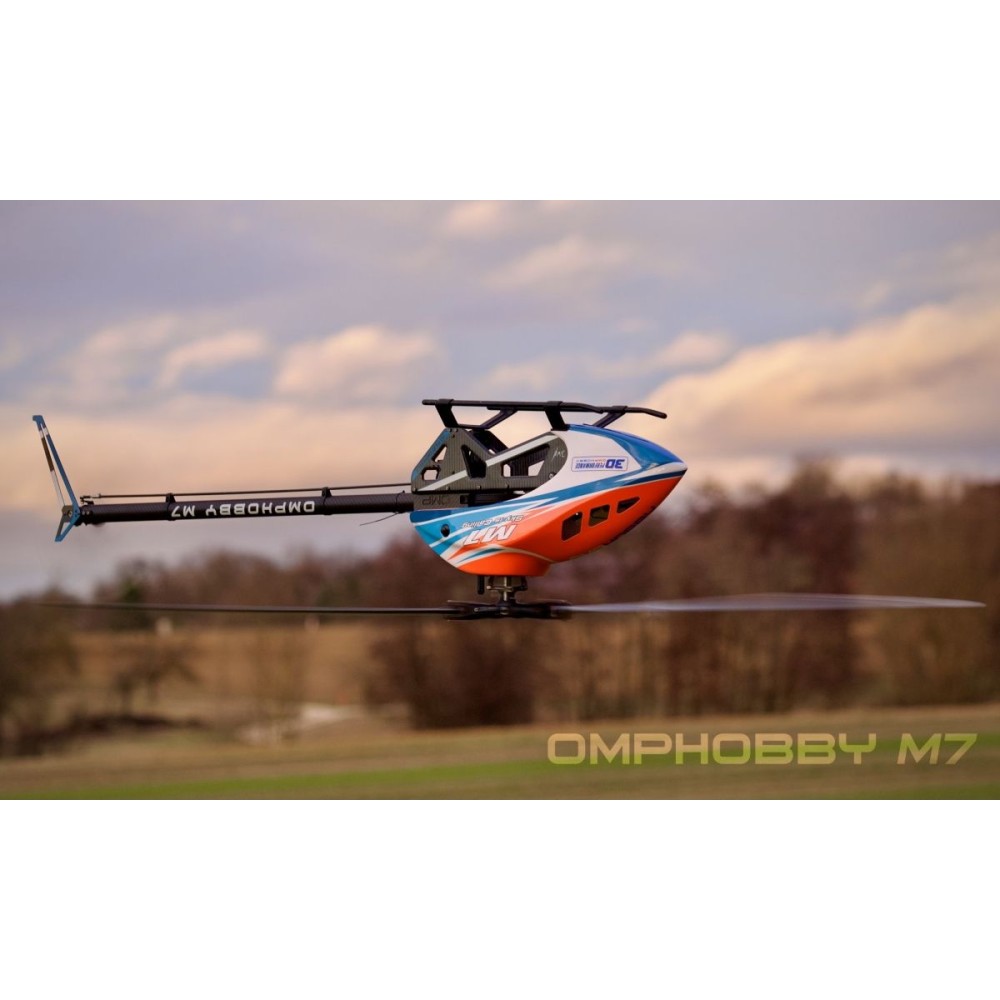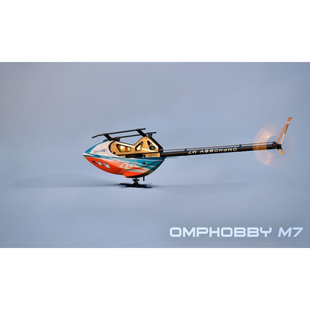 OMP HOBBY M7 je vysokovýkonný vrtulník třídy „700“ konstruovaný tak, aby při instalaci odpovídajícího motoru a elektroniky vyhověl požadavkům pilotů, kteří s velkými vrtulníky teprve začínají, sportovním letcům, maketářům i 3D borcům. Při návrhu M7 byl kladen důraz na minimalizaci setrvačných momentů ve všech třech osách, což spolu se systémem ovládání nosného a vyrovnávacího rotoru s velkým rozsahem výchylek nabízí neuvěřitelnou autoritu řízení a obratnost.