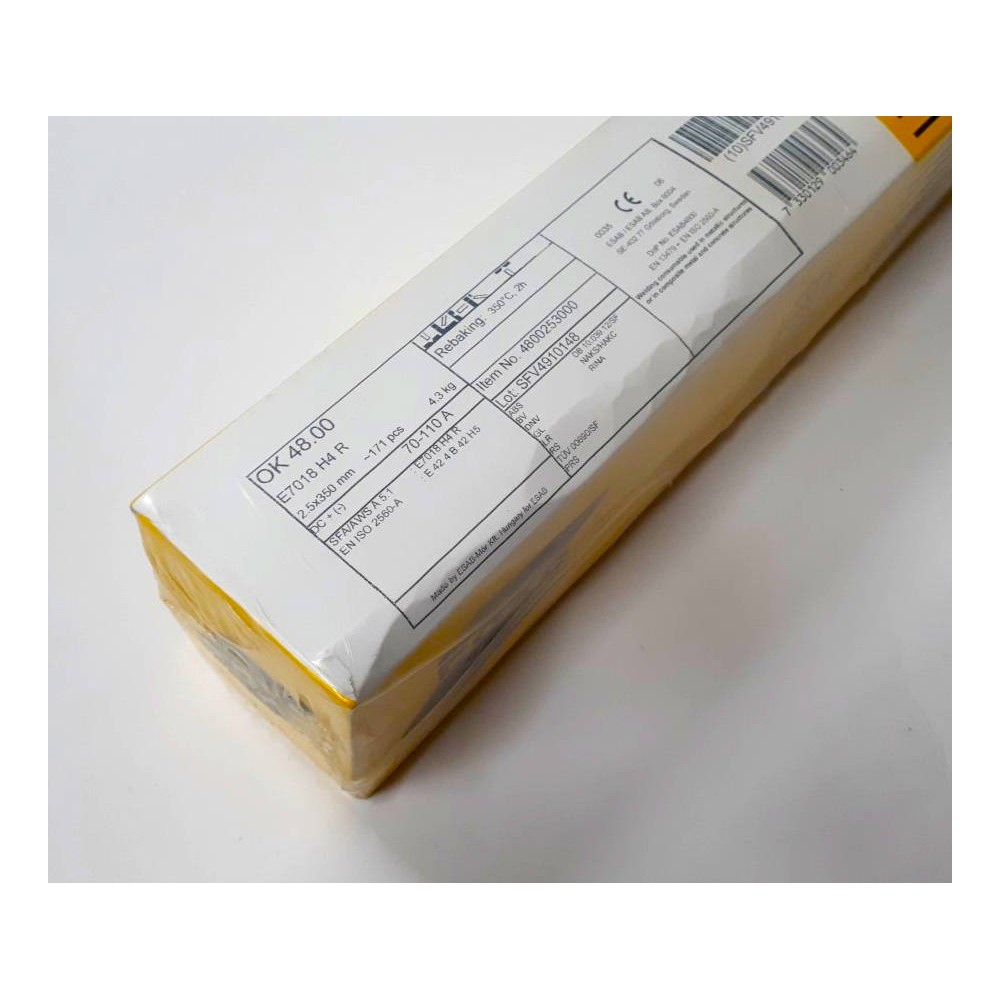 Nejrozšířenější OK bazická elektroda pro svařování nelegovaných a nízkolegovaných ocelí především označení P235/S235 až P420/S420 aj. Použitelná pro všechny polohy svařování s výjimkou polohy shora dolů. Obal se sníženou navlhavostí poskytuje houževnatý svarový kov odolný proti praskavosti s nízkým obsahem vodíku.