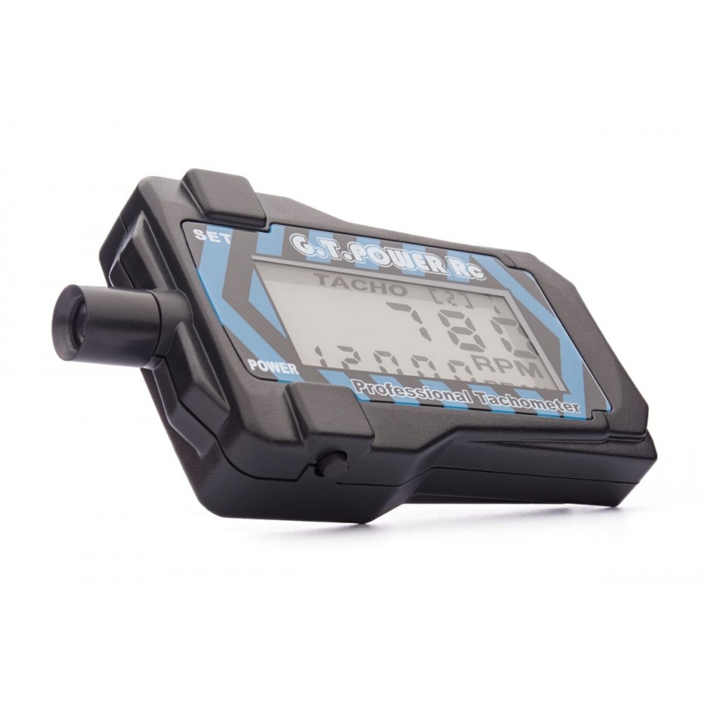 Miniaturní optický otáčkoměr pro měření otáček vrtulí s 2-9 listy s LCD displejem s vypínatelným podsvícením. Měří okamžité otáčky, zaznenává maximální naměřenou hodnotu.
