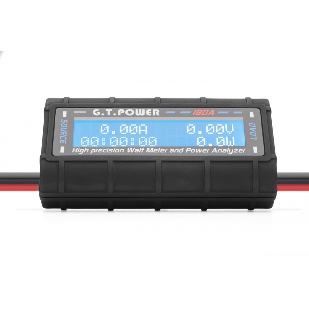 Malý stejnosměrný wattmetr do 6500W s měřením proudu v rozsahu 0-180A, napětí 0-60V, náboje 0-65Ah a energie 0-6500Wh v reálném čase a pamětí pro maximální hodnoty proudu, napětí a výkonu/příkonu. Rozměry 85x43x25mm, hmotnost 82g.
