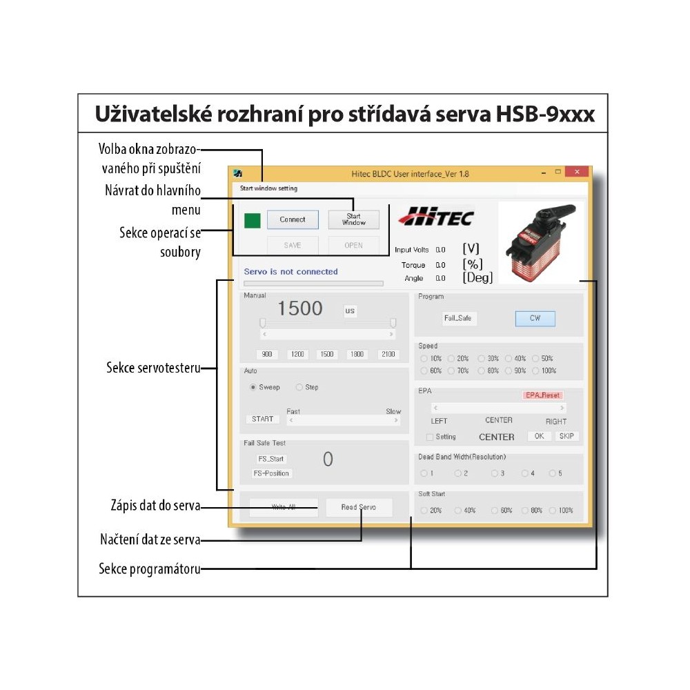 PC rozhraní pro softwarový programátor digitálních serv Hitec (včetně nové řady HS-7xxx) a...