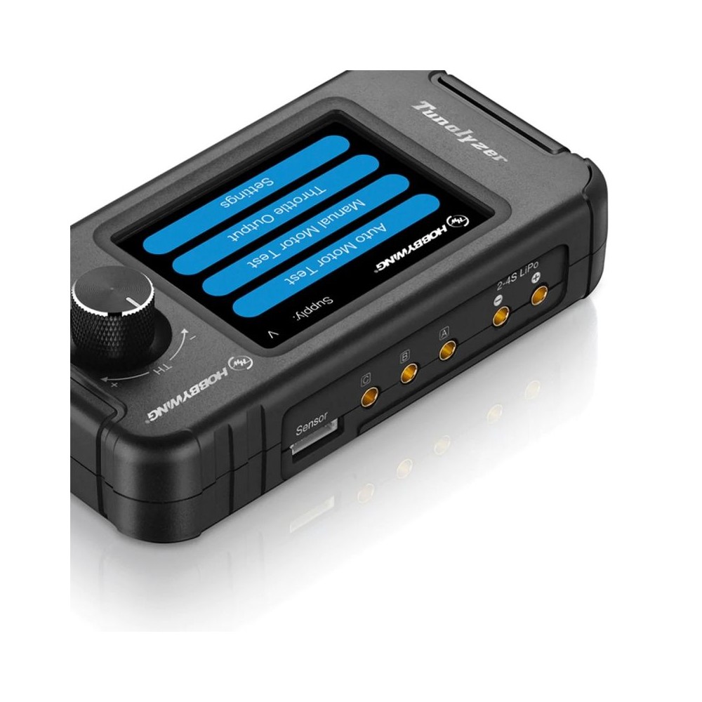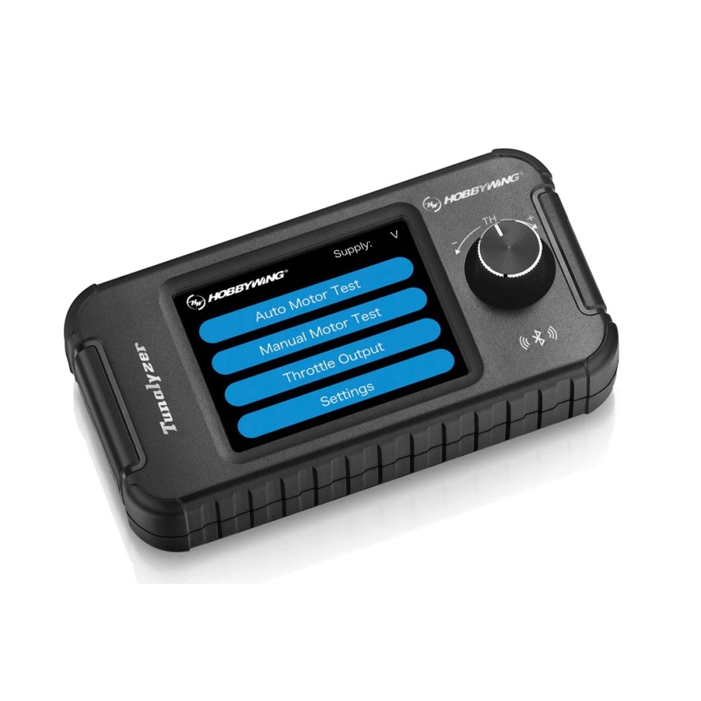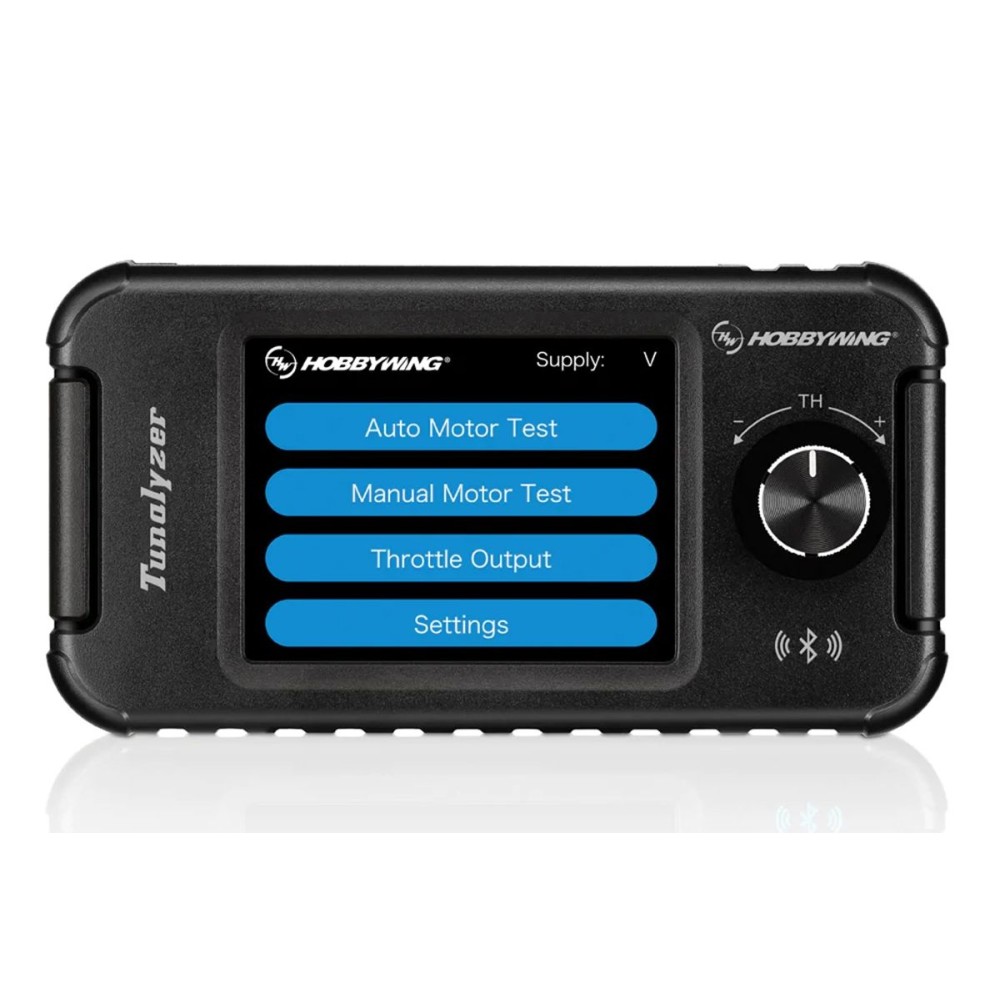 Tester střídavých elektromotorů Hobbywing Tunalyzer je elektronický přístroj speciálně zkonstruovaný pro měření parametrů, jako je počet otáček na volt („KV“), otáčky motoru, měření proudového odběru, měření časování (průměrné hodnoty i jednotlivých fází), kontrola funkcí Hallových senzorů střídavých motorů. Naměřené hodnoty pro střídavé motory se snímači i bez snímačů jsou zobrazovány na dotykovém LCD displeji. Tunalyzer také pracuje jako servotester a díky vestavěnému Bluetooth umožňuje nastavování regulátorů otáček Hobbywing a aktualizaci jejich firmwaru s pomocí mobilní aplikace HW Link.