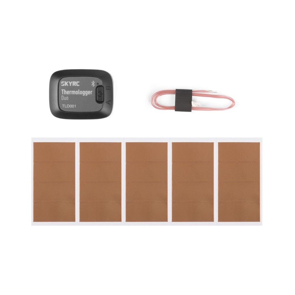 TLD001 je inteligentní zapisovač teploty schopný Bluetooth spojení s aplikací RC Gears. Může měřit a zaznamenávat teplotu regulátoru, motoru, pohonného akumulátoru a dalšího příslušenství v rozmezí -20°C až 210°C. S pomocí aplikace RC Gears můžete zobrazit záznam teploty jako graf stejně jako dříve zaznamenaná měření. Data je možno sdílet jako snímek obrazovky nebo excelovský soubor. Zapisovač využijete při tréninku a nastavování pohonné jednotky vašeho modelu; protože měření probíhá v off-line režimu, také i při soutěžích, ve kterých není povoleno používání telemetrických funkcí RC souprav poskytujících údaje v reálném čase.