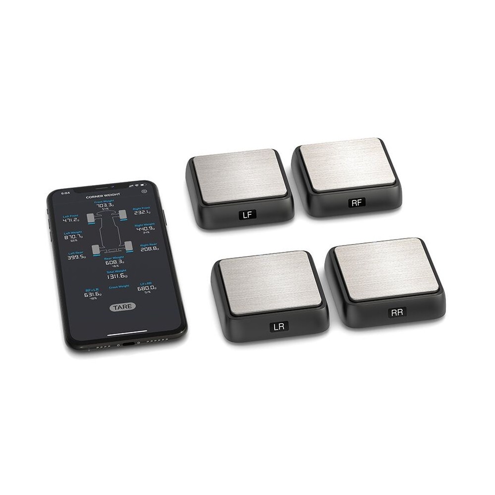SCWS pro přesné měření používá systém 4 digitálních vah navzájem a s aplikací ve smartphonu (s operačním systémem Android i iOS) propojených pomocí Bluetoth 5.0. Udává nejen zatížení jednotlivých kol, ale vypočítává také zatížení přední a zadní nápravy, diagonální zatížení kol (levé přední + pravé zadní a pravé přední + levé zadní) a celkovou hmotnost. Díky tomu vám pomůže stát se skutečným expertem na nastavování podvozků. Aplikace také zajistí Bluetooth připojení vah pro jednotlivá kola, přiřazení jejich pozice, kalibraci a tárování.