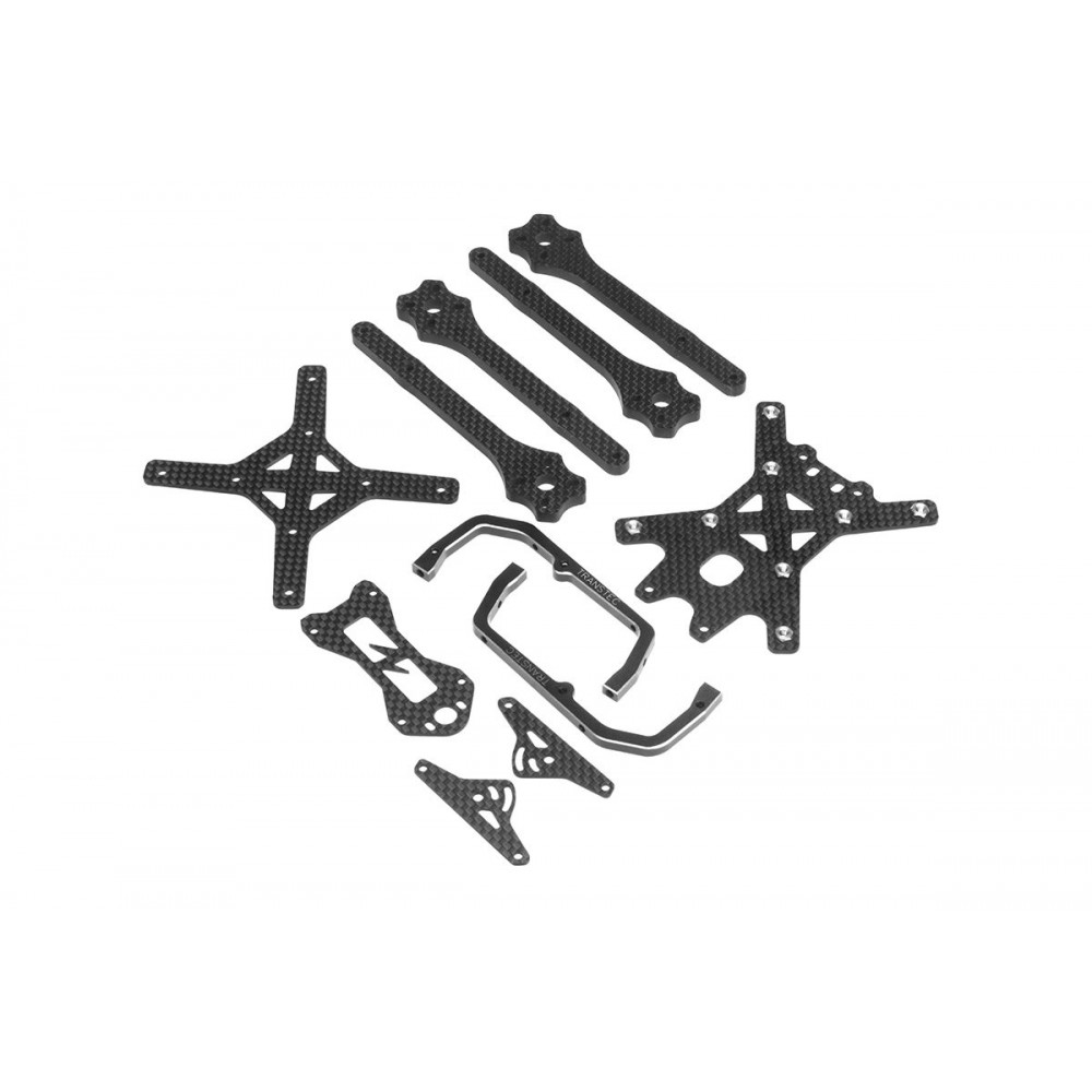 Uhlíkový rám pro FPV závodění. Velikost rámu je 235mm (Průměr pomyslné kružnice na které jsou umístěné motory) ve tvaru protáhlého X (Stretched X) a je vhodný pro použití maximálně 5" vrtulí.