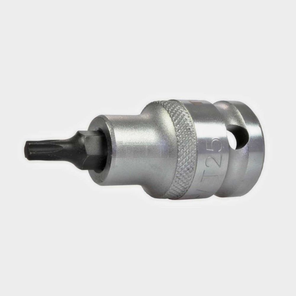 Zástrčná hlavice vyrobené z chrom-vanadové oceli s napevno zalisovaným bitem s otvorem.