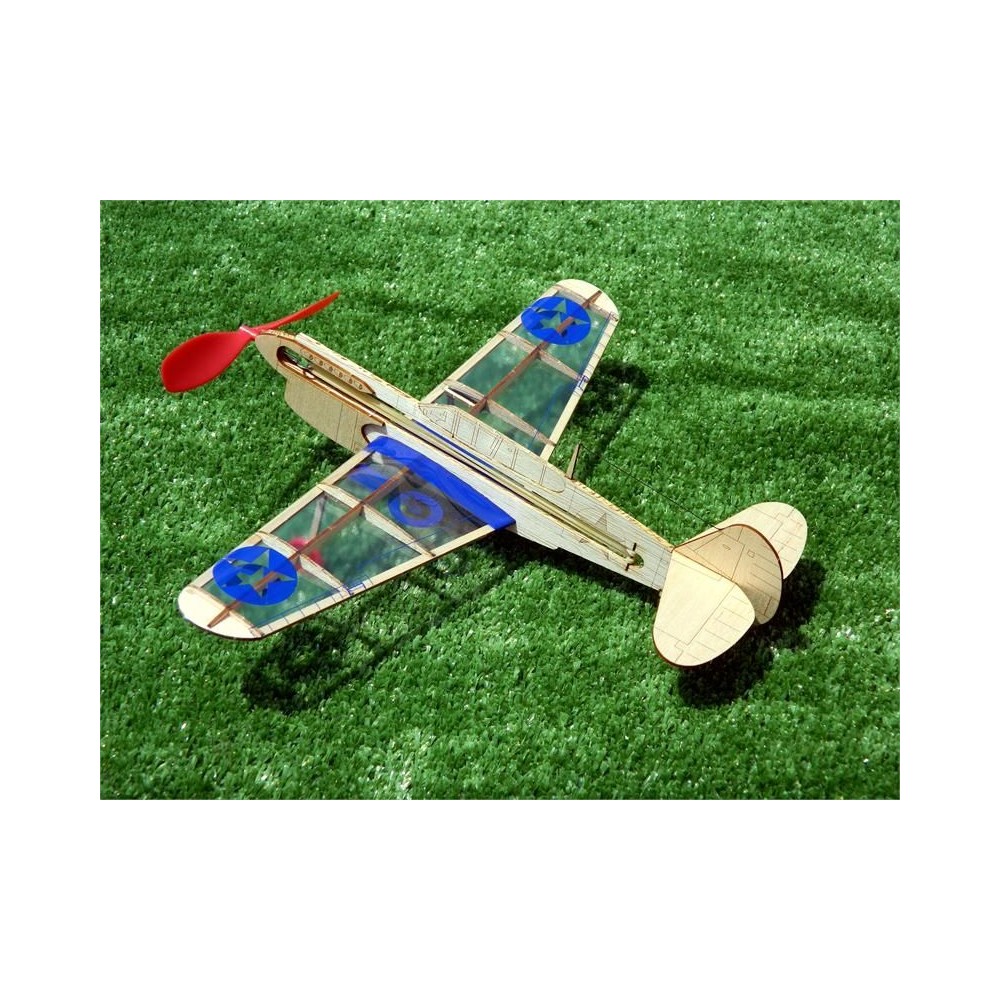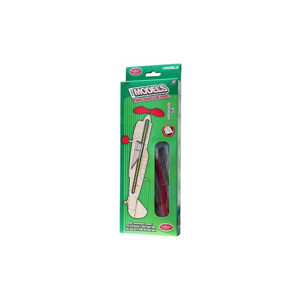 Rychlostavebnice stínové polomakety P-40 Warhawk o rozpětí 286mm s pohonem gumovým svazkem z laserem vyřezávaných balsových dílů. Konstrukční křídlo s potahem potištěnou samolepící fólií. Za 2 hodiny připraveno k letu.