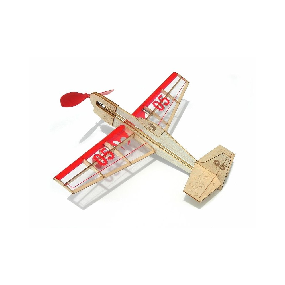 Celobalsový konstrukční model s gumovým pohonem s jednoduchou stavbou. Vysekávané díly, vrtule,...
