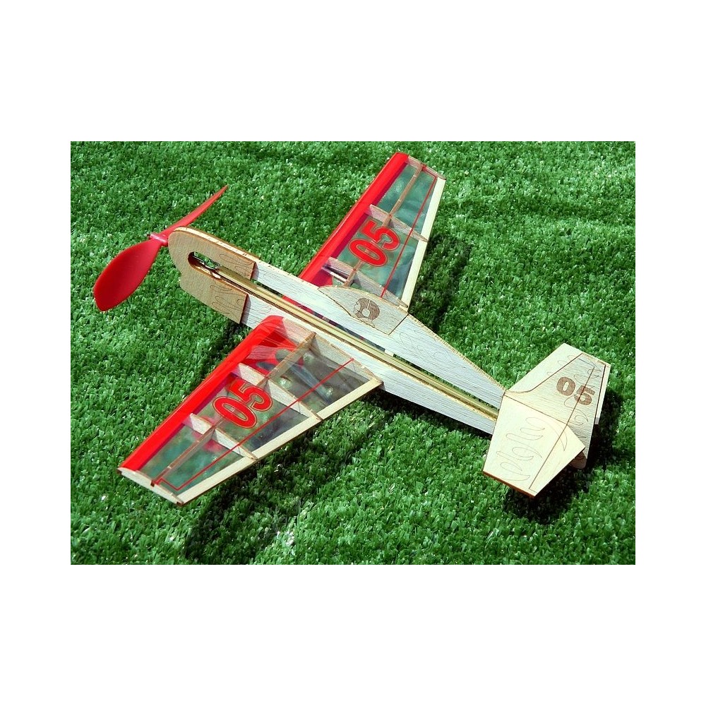 Celobalsový konstrukční model s gumovým pohonem s jednoduchou stavbou. nyní nově laserem...