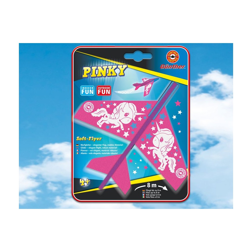 Pinky je vrhací kluzák navržený pro maximální zábavu i bezpečnost. Díky svému unikátnímu aerodynamickému tvaru zvládá jak klouzavé lety na dlouhé vzdálenosti, tak vzrušující smyčky a akrobatické triky. Vhodný pro děti už od 4 let a skvělý i pro dospělé, kteří se nebojí vrátit do dětských let!