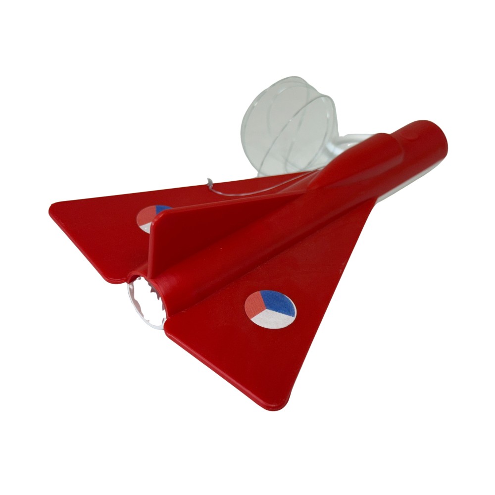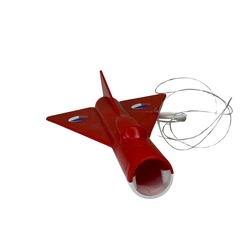 Populární zvukové letadlo MiG, plastová retro hračka pro sběratele Igralet. Barva červená.