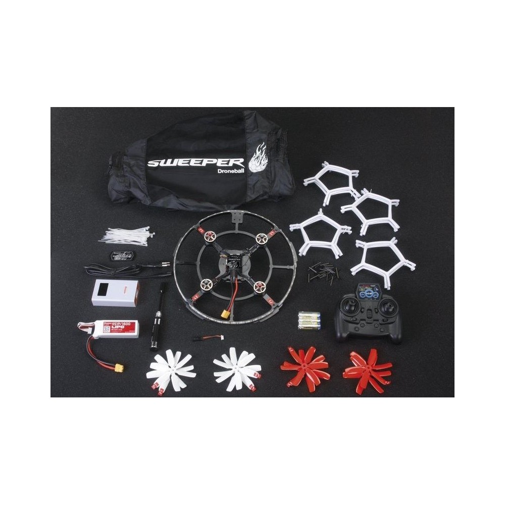 SWEEPER je středobodem hry Droneball. SWEEPER, speciálně vyvinutý pro tuto hru, je kvadrokoptéra s ochranným rámem, která snadno odolá vzájemnému kontaktu i za letu. Tento koptérový míč vám nabízí možnost vstoupit přímo do dronballové scény a rychle slavit první úspěchy.