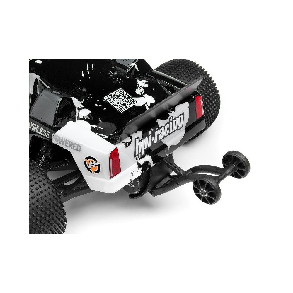 Už žádné převracení při plné akceleraci. Zadní "wheelie" kolečko pomáhá držet model na silnici a užívat si plného výkonu.