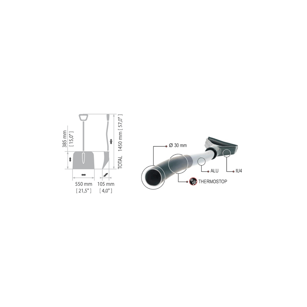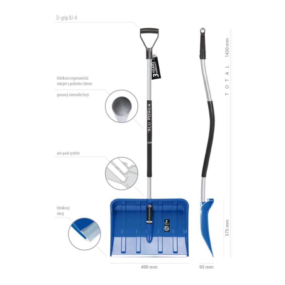 Shrnovač sněhu IL2TBE ALPIN 2 alutube ERGOMETAL má odolný plast a prohnutou rukojeť.