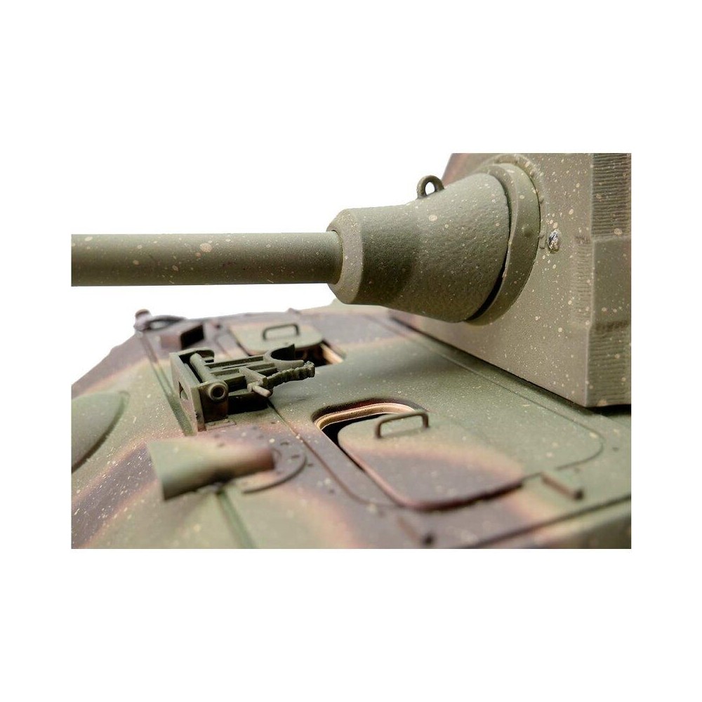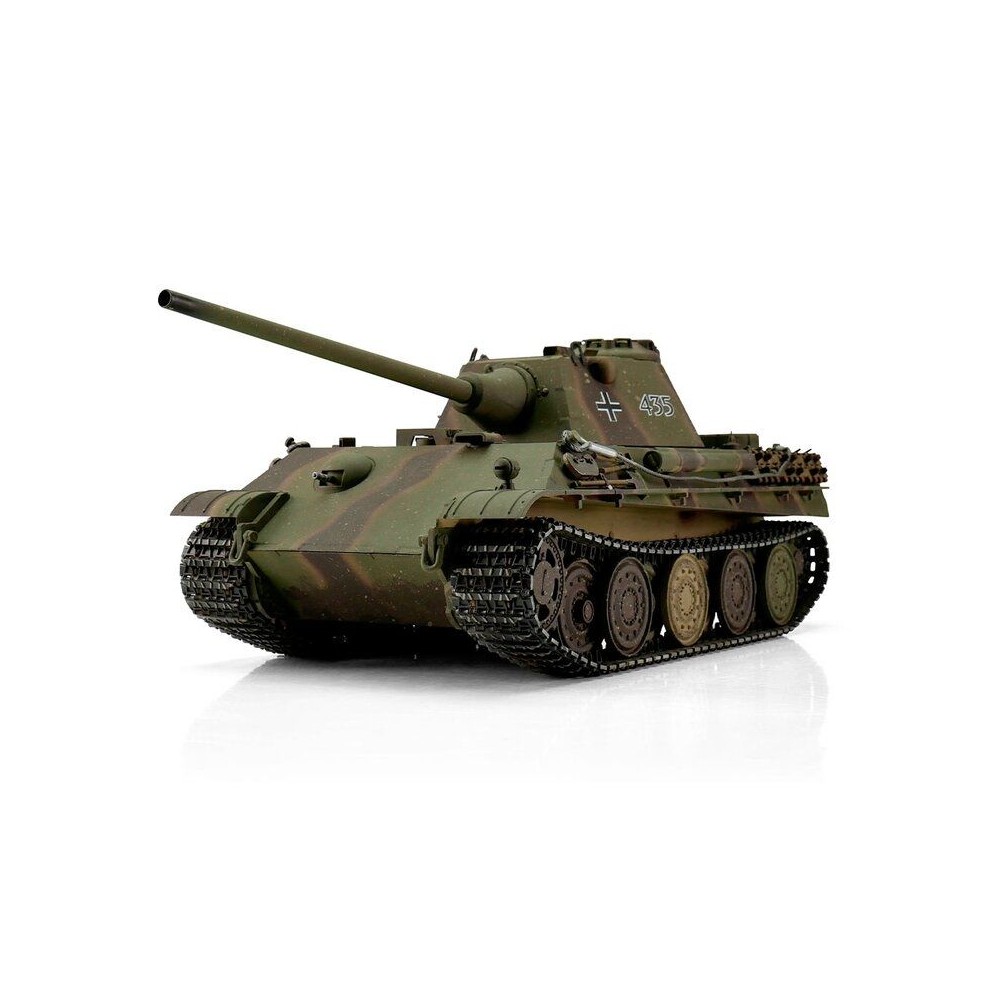 Výkonný model tanku má RC ovládání 2,4 GHz. Vozidlo je vybaveno IR bitevním systémem, takže jsou možné bitvy s vozidly ze stejné série. Motory s optimalizovaným točivým momentem dodávají modelu Panther F přesnou a plynulou jízdu. Kovové převody s robustními převody a vylepšeným převodem zajišťují větší výkon. Díky proporcionálnímu ovládání se můžete s tankem přiblížit velmi pomalu a plynule zvyšovat rychlost. Panther F se pohybuje dopředu a dozadu, také s otočením doleva a doprava. Lze jej také na místě otočit doleva nebo doprava. Můžete zvednout a spustit dělo a otočit věž o 360 stupňů. Realistický zážitek završují různé zvuky motoru, zpětný zákluz hlavně, záblesk hlavně a kouř z výfuku.