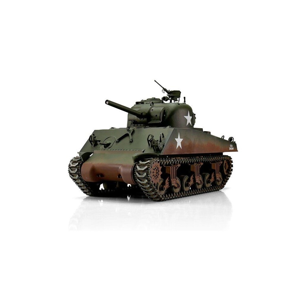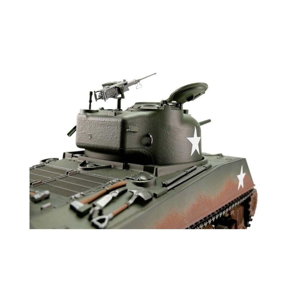 Výkonný model tanku má RC ovládání 2,4 GHz. Vozidlo je vybaveno IR bitevním systémem, takže jsou možné bitvy s vozidly ze stejné série. Motory s optimalizovaným točivým momentem dodávají modelu M4A3 Sherman 75mm přesnou a plynulou jízdu. Kovové převody s robustními převody a vylepšeným převodem zajišťují větší výkon. Díky proporcionálnímu ovládání se můžete s tankem přiblížit velmi pomalu a plynule zvyšovat rychlost. M4A3 Sherman 75mm se pohybuje dopředu a dozadu, také s otočením doleva a doprava. Lze jej také na místě otočit doleva nebo doprava. Můžete zvednout a spustit dělo a otočit věž o 360 stupňů. Realistický zážitek završují různé zvuky motoru, zpětný zákluz hlavně, záblesk hlavně a kouř z výfuku.