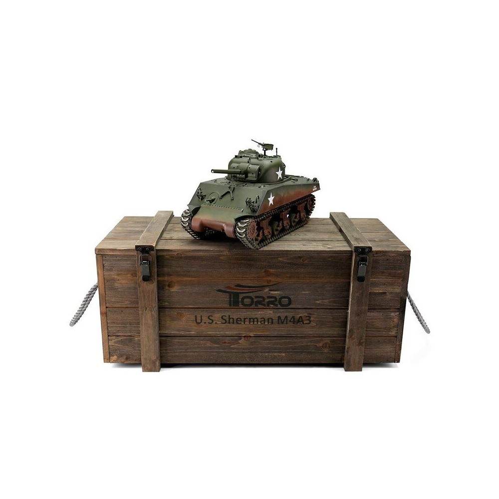 S hmotností kolem pěti kilogramů je M4A3 Sherman 75mm ideální pro náročného zákazníka. V profesionální edici se vyznačuje vynikající kvalitou barvy airbrush, technologií desek plošných spojů 2,4 GHz a novým reproduktorem. Tento model má vynikající jízdní vlastnosti, širokou škálu funkcí a realistický zvuk. Vysoce kvalitní pásy, hnací a vodicí kola s válečky, stejně jako spodní část trupu a bojová věž jsou vyrobeny z kovu. Mnoho malých dílů a různých samolepek dokonale završuje repliku věrného měřítka.