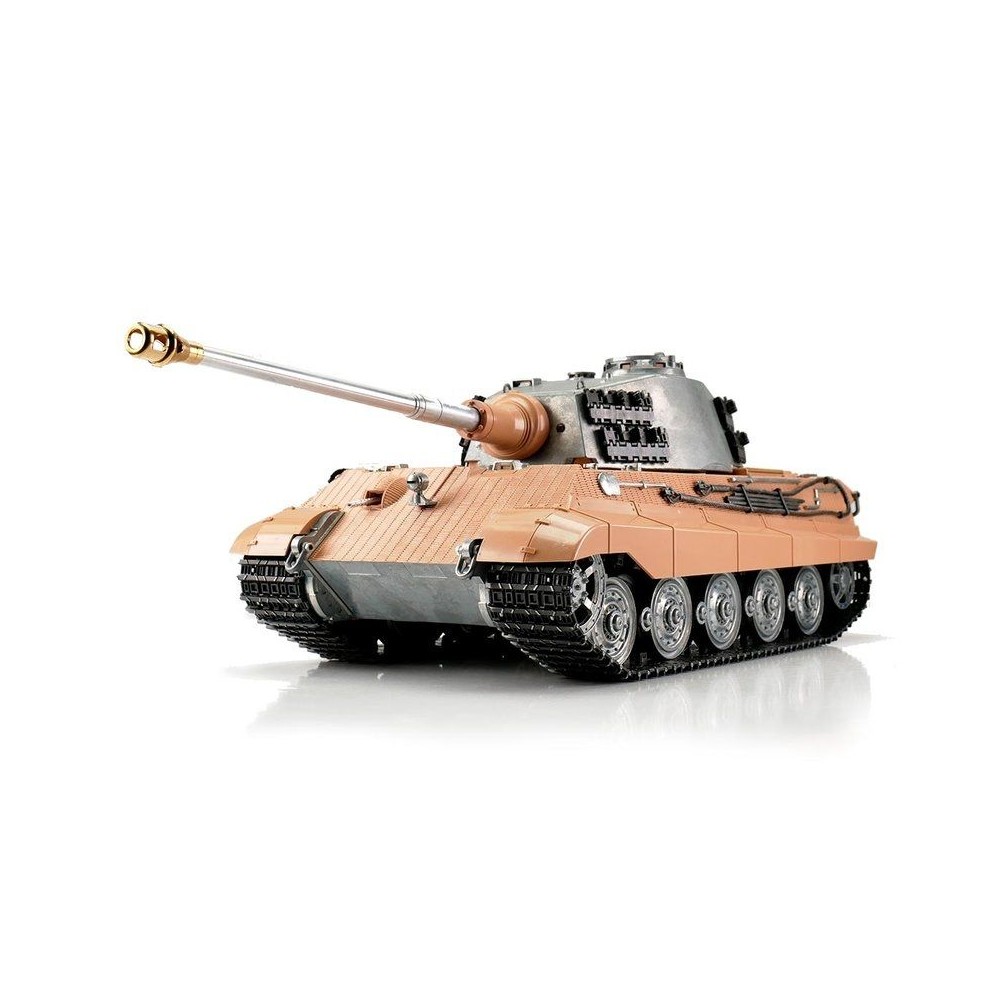S hmotností kolem sedmi kilogramů je Königstiger ideální pro náročného zákazníka. V profesionální edici se vyznačuje vynikající kvalitou barvy airbrush, technologií desek plošných spojů 2,4 GHz a novým reproduktorem. Tento model má vynikající jízdní vlastnosti, širokou škálu funkcí a realistický zvuk. Vysoce kvalitní pásy, hnací a vodicí kola s válečky, stejně jako spodní část trupu a bojová věž jsou vyrobeny z kovu. Mnoho malých dílů a různých samolepek dokonale završuje repliku věrného měřítka.