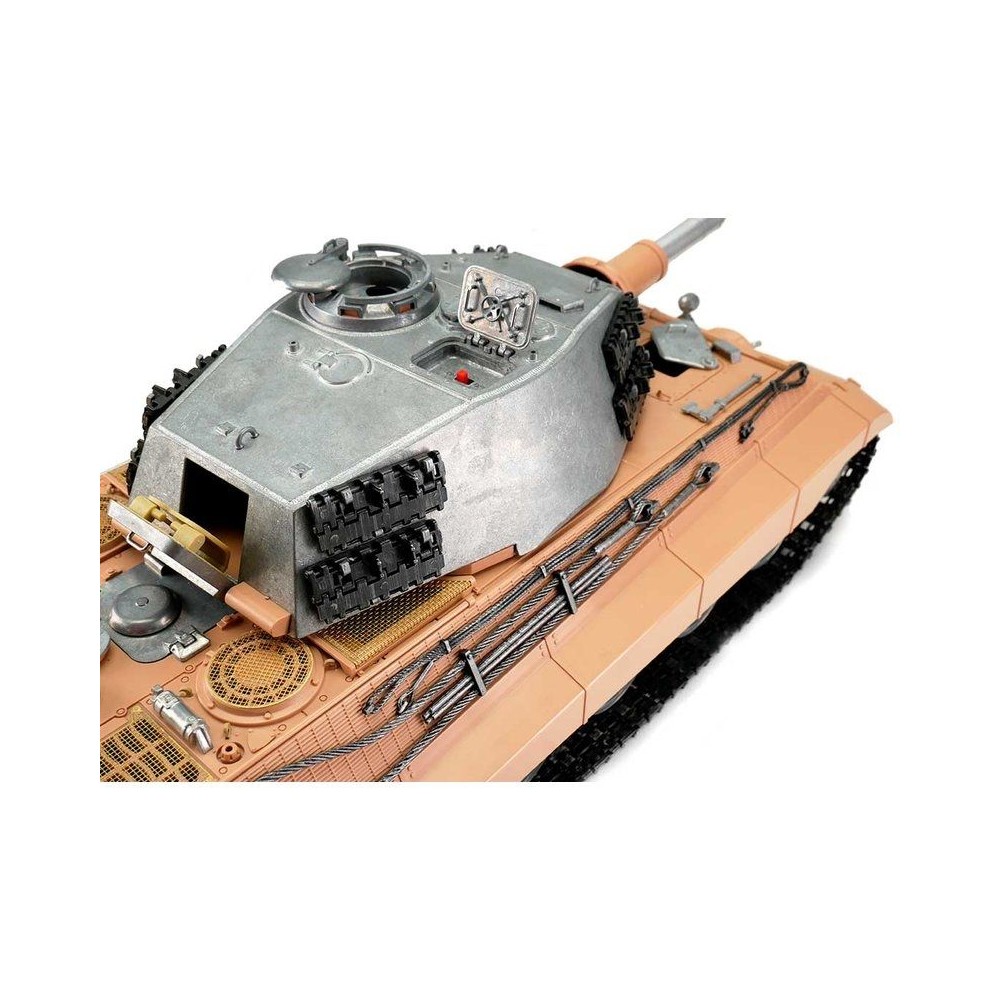 Výkonný model tanku má RC ovládání 2,4 GHz. Vozidlo je vybaveno IR bitevním systémem, takže jsou možné bitvy s vozidly ze stejné série. Motory s optimalizovaným točivým momentem dodávají modelu Königstiger přesnou a plynulou jízdu. Kovové převody s robustními převody a vylepšeným převodem zajišťují větší výkon. Díky proporcionálnímu ovládání se můžete s tankem přiblížit velmi pomalu a plynule zvyšovat rychlost. Königstiger se pohybuje dopředu a dozadu, také s otočením doleva a doprava. Lze jej také na místě otočit doleva nebo doprava. Můžete zvednout a spustit dělo a otočit věž o 360 stupňů. Realistický zážitek završují různé zvuky motoru, zpětný zákluz hlavně, záblesk hlavně a kouř z výfuku.