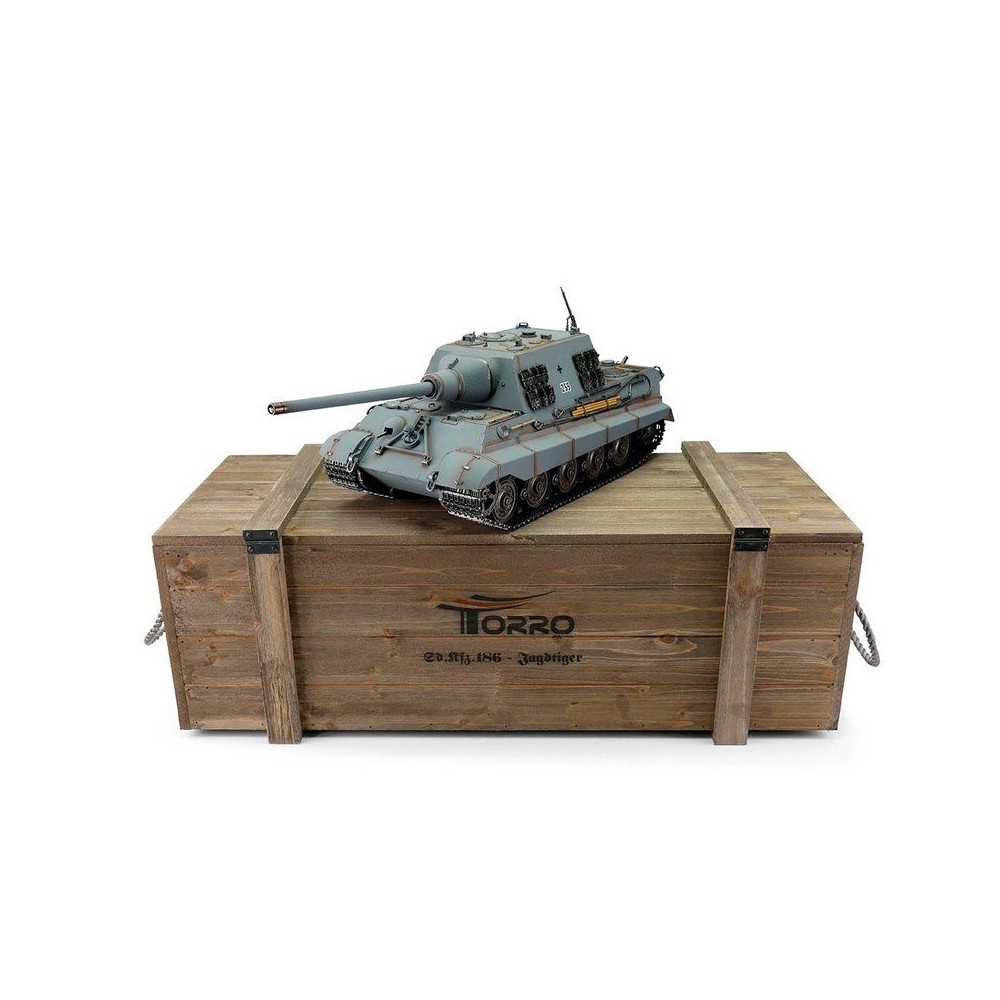 S hmotností kolem sedmi kilogramů je Jagdtiger ideální pro náročného zákazníka. V profesionální edici se vyznačuje vynikající kvalitou barvy airbrush, technologií desek plošných spojů 2,4 GHz a novým reproduktorem. Tento model má vynikající jízdní vlastnosti, širokou škálu funkcí a realistický zvuk. Vysoce kvalitní pásy, hnací a vodicí kola s válečky, stejně jako spodní část trupu a bojová věž jsou vyrobeny z kovu. Mnoho malých dílů a různých samolepek dokonale završuje repliku věrného měřítka.