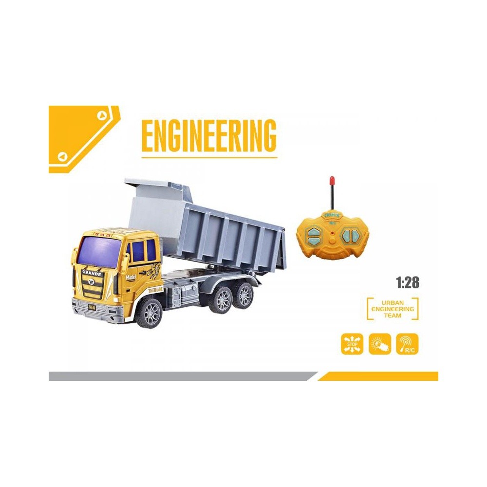 RC sklápěč na dálkové ovládání. Jezdí dopředu, dozadu a do stran. Velikost 1:28