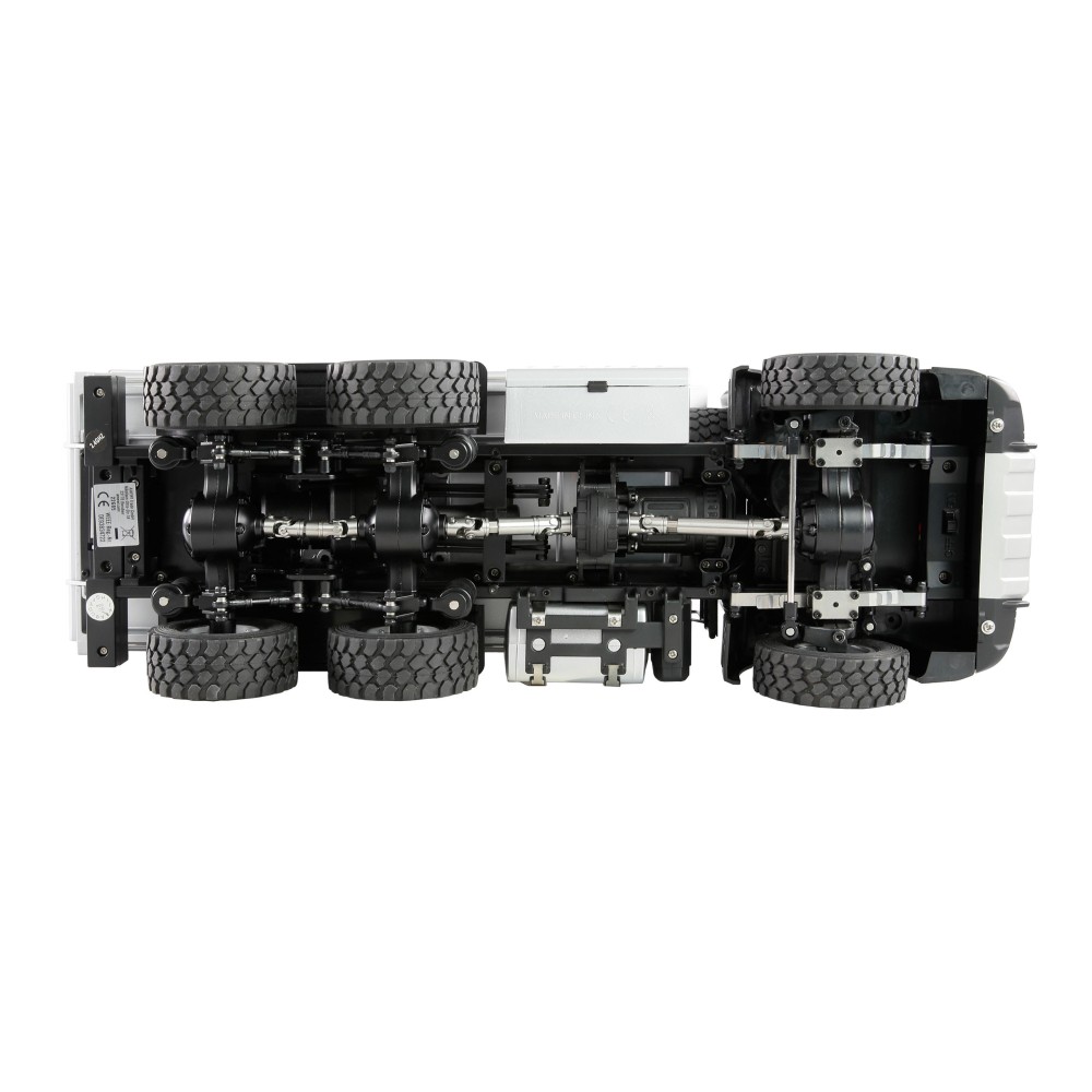 RC sklápěč v měřítku 1:24, kovové části, 2,4 GHz, 9 kanálů, zvukový a světelný modul, barva bílá.