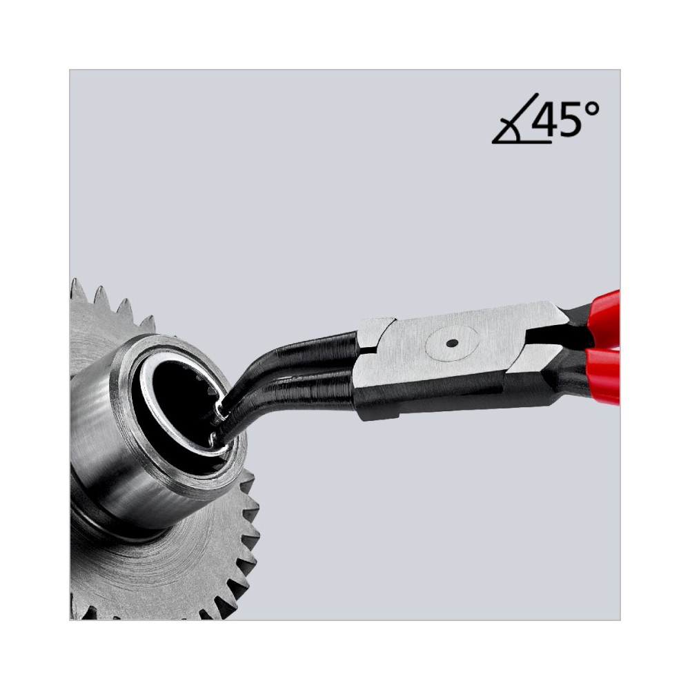 KNIPEX 44 31 J22 Kleště na pojistné kroužky pro vnitřní kroužky v otvorech Nahnutý v úhlu 45° potaženo plastem fosfátováno atramentolem na černo 180 mm