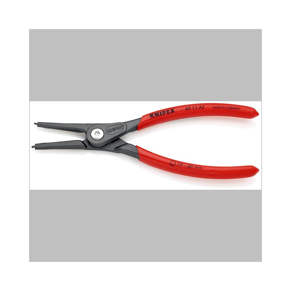 KNIPEX 49 11 A2 Precizní kleště na pojistné kroužky pro vnější kroužky na hřídelích potaženy plastem který brání sklouzávání fosfátováno atramentolem na šedo 180 mm