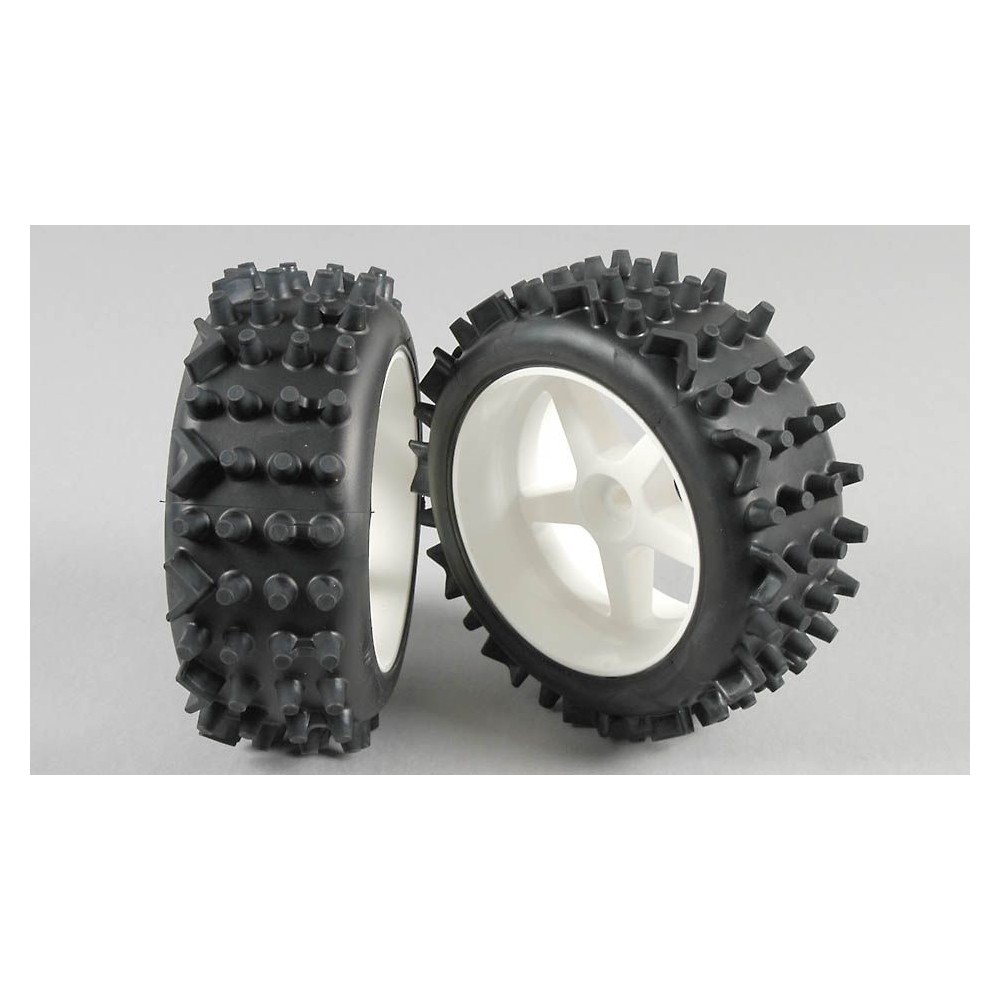 Kompletní zadní kola pro buggy 1/5. Pneumatiky vhodné pro asfalt a tvrdou hlínu. Disky pro Baja 5B.