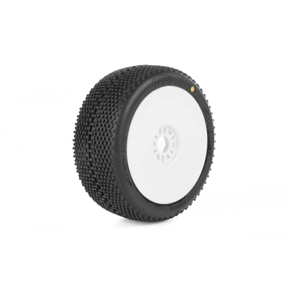 Naše pneumatiky TPRO jsou k dispozici ve 2 různých typech. Jednak jako nelepené pneumatiky v sadě po 4 kusech, nebo jako hotové lepené pneumatiky v páru po 2 kusech. U lepených kol se používá naše modrá vložka TPRO ve střední barvě (TP1309I3) a bílé disky v měkké provedení (TP100011SWH).