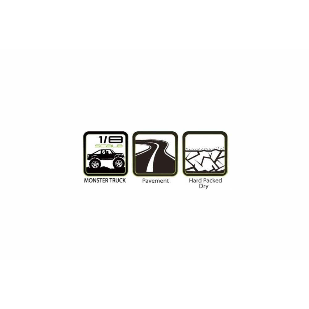 Kompletní kola pro monster trucky 1/8 se sadou vyměnitelných hexů o různých offsetech.